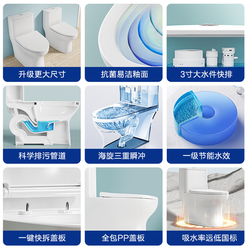 📚 九牧普通马桶虹吸式防臭一级节能水效大冲力防臭抗菌防堵塞坐便器