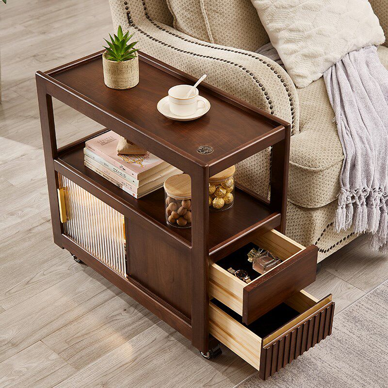 📚 移动边几带轮沙发边柜实木边几桌小推车收纳小茶几客厅边几可移动
