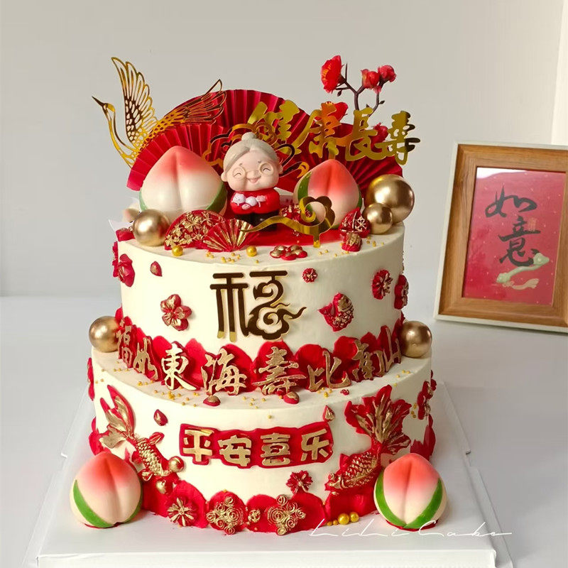 📚 双层祝寿生日蛋糕鞍山海城市岫岩县西柳镇台安县同城配送父母长辈
