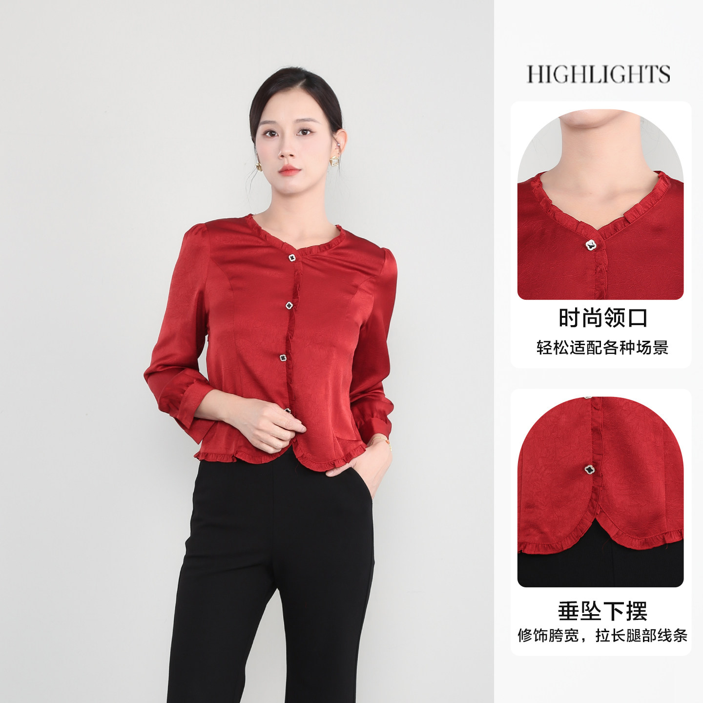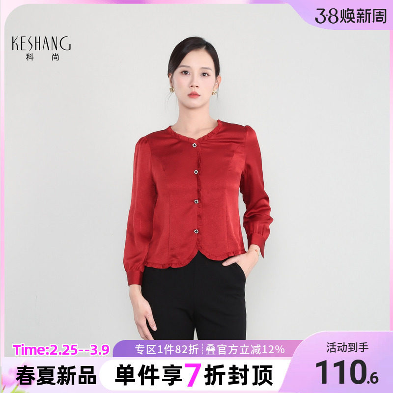 📚 科尚时尚妈妈装仿真丝长袖衬衫女2026年春季新款缎面垂感气质上衣