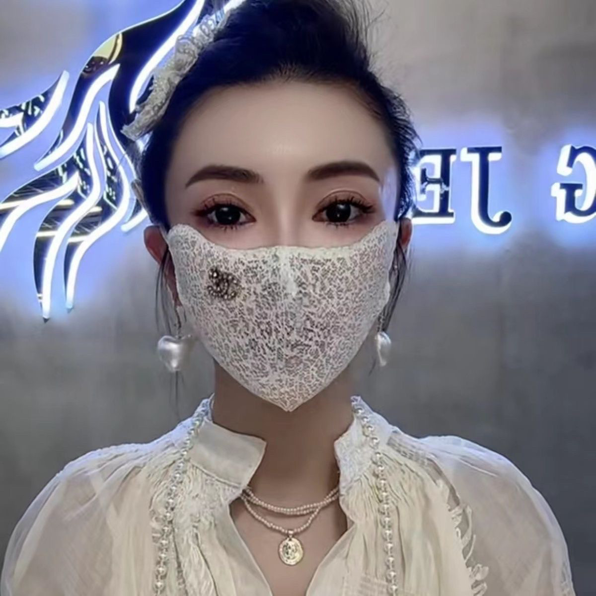 📚 网红同款蕾丝网纱山茶花防晒口罩显瘦颜值高可水洗