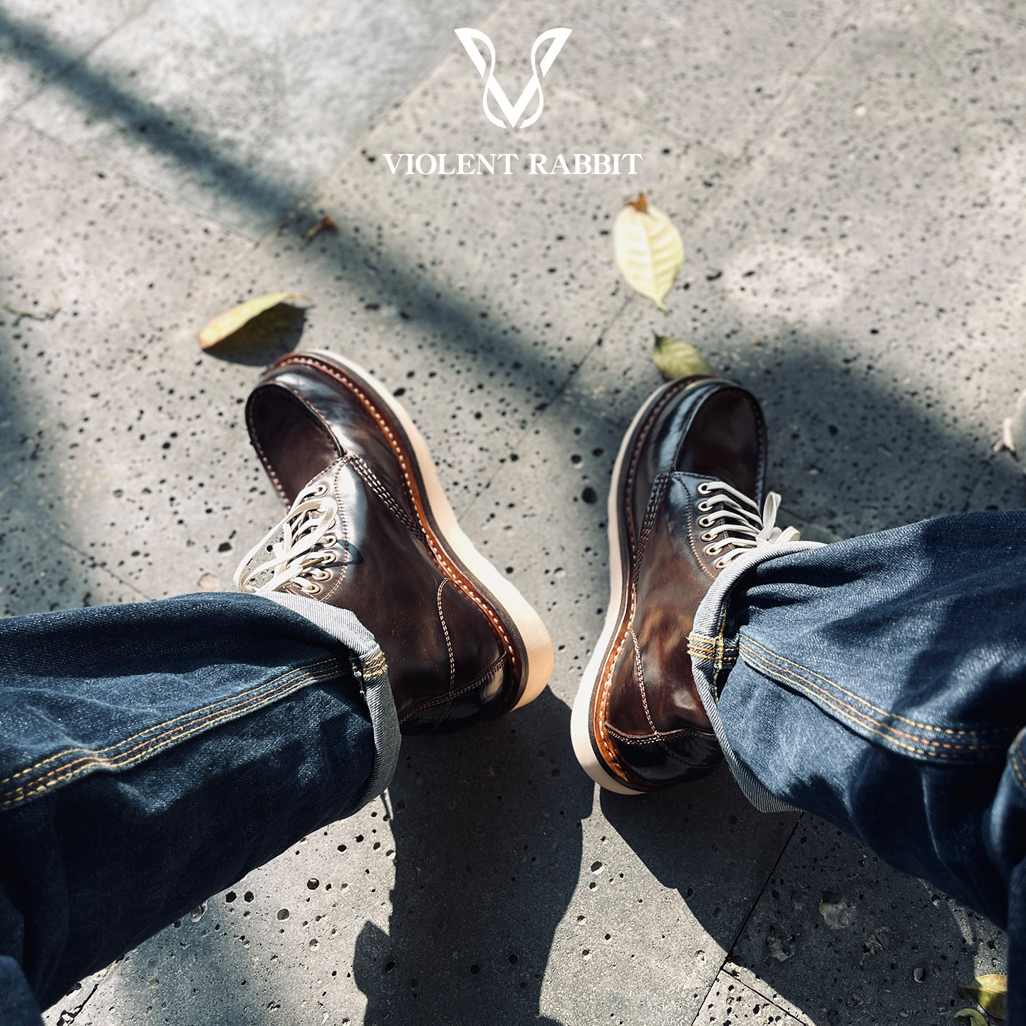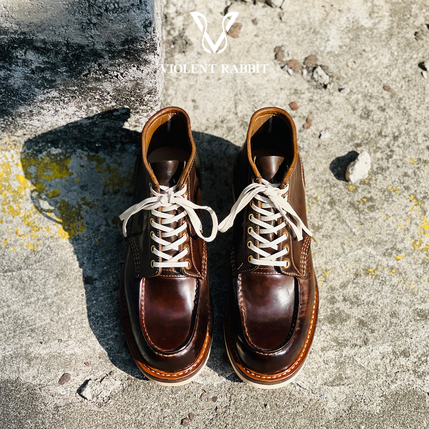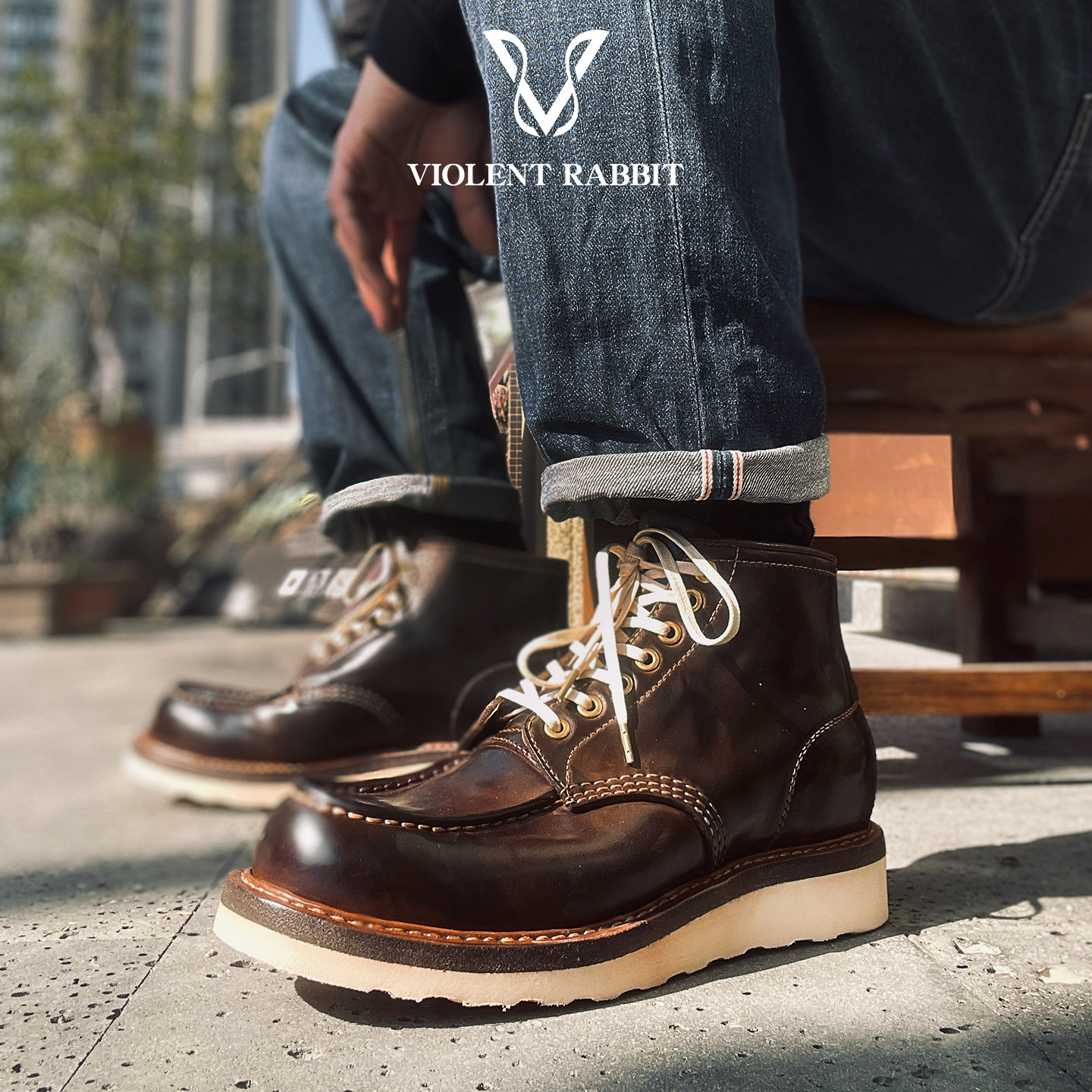 📚 VR兔爷 马臀皮875工装靴男雪茄色水洗复古高帮莫卡辛鞋手缝固特异