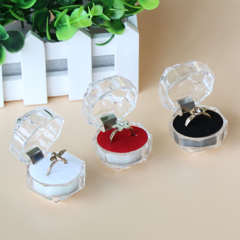 📚 透明水晶小八角戒指盒礼品盒首饰收纳耳钉饰品展示盒耳环包装盒子