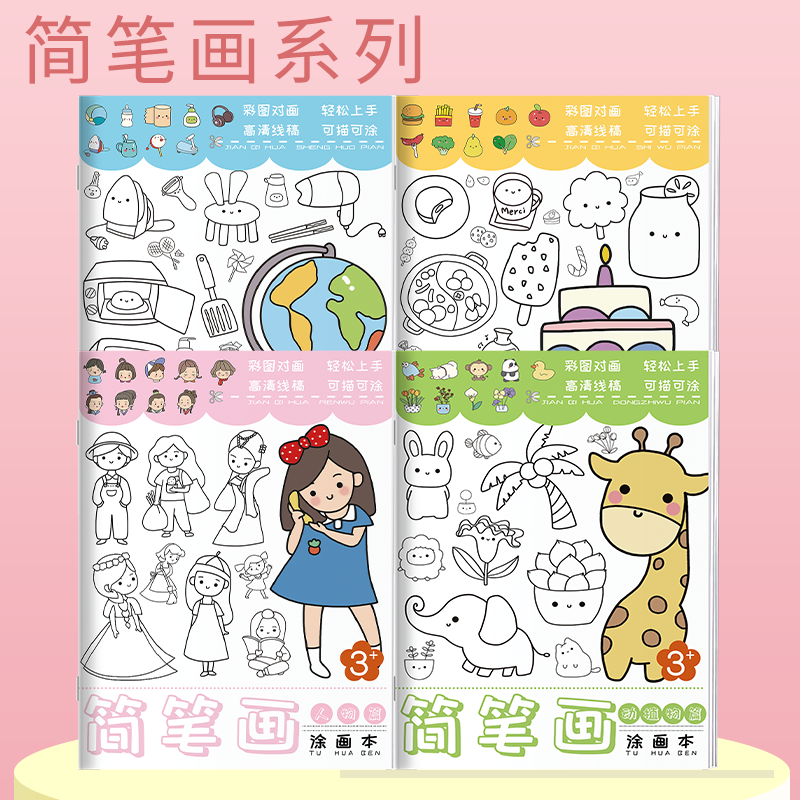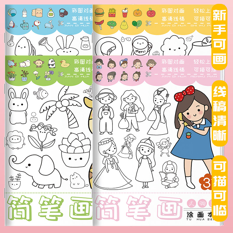 📚 儿童简笔画描摹本卡通动物线稿描绘画画本图画临摹画册漫画手绘画