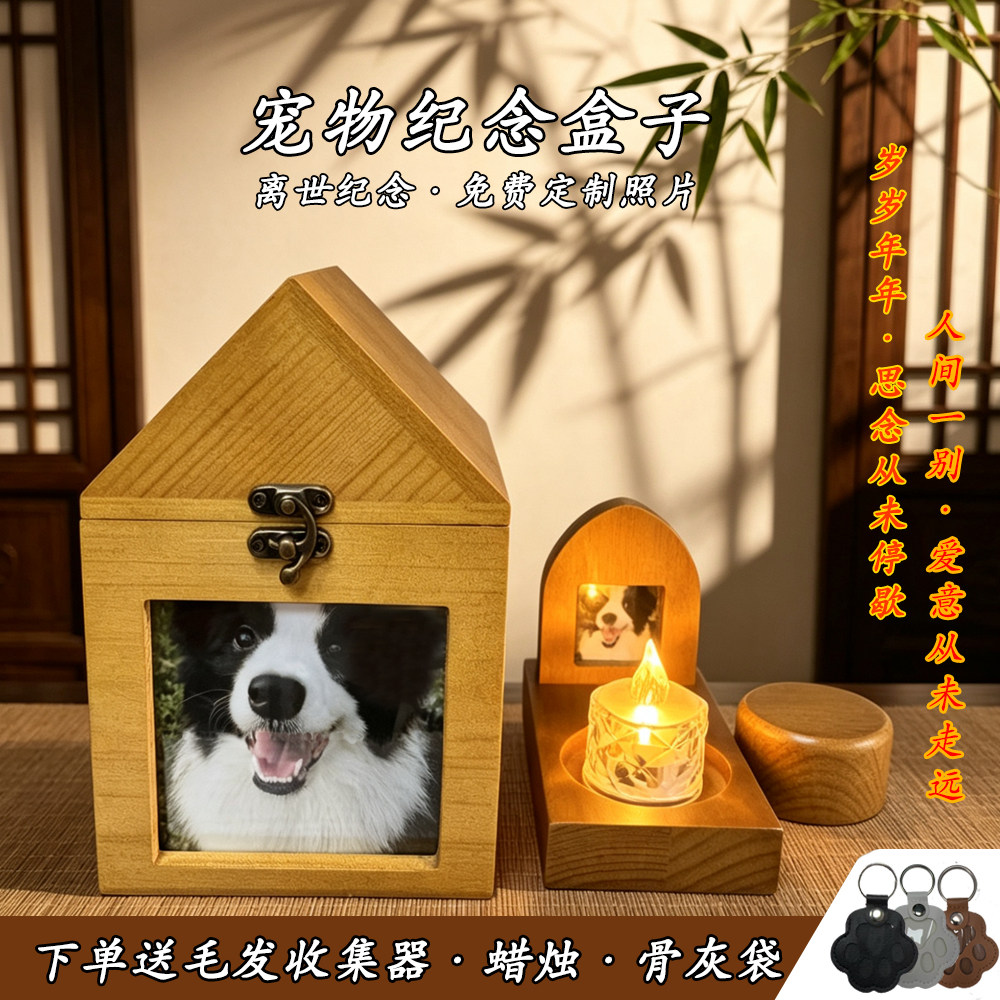 📚 宠物骨灰盒棺材实木猫狗离世火化纪念盒子照片相框殡葬丧葬用品