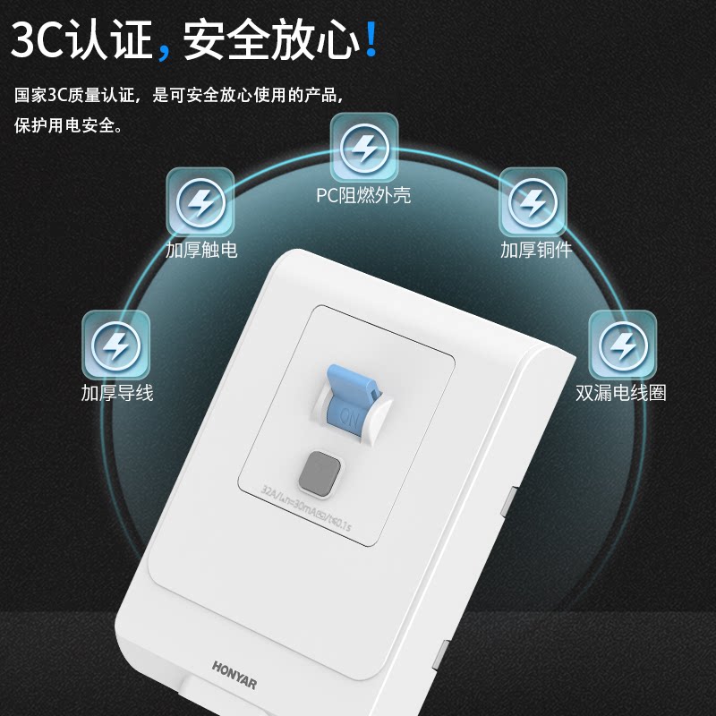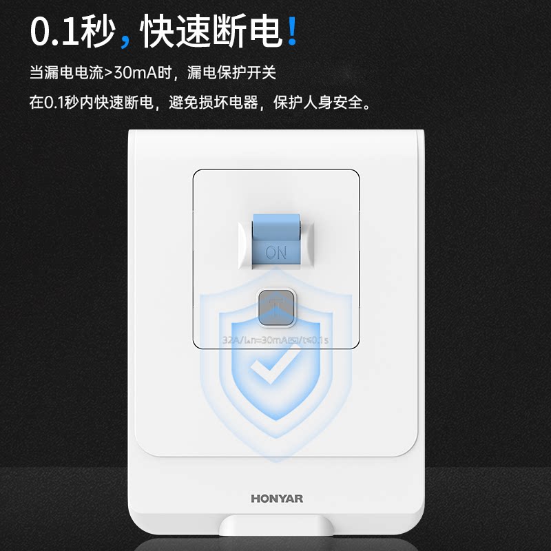 📚 鸿雁漏电保护开关32A40A家用空调热水器专用86型空开带漏电保护