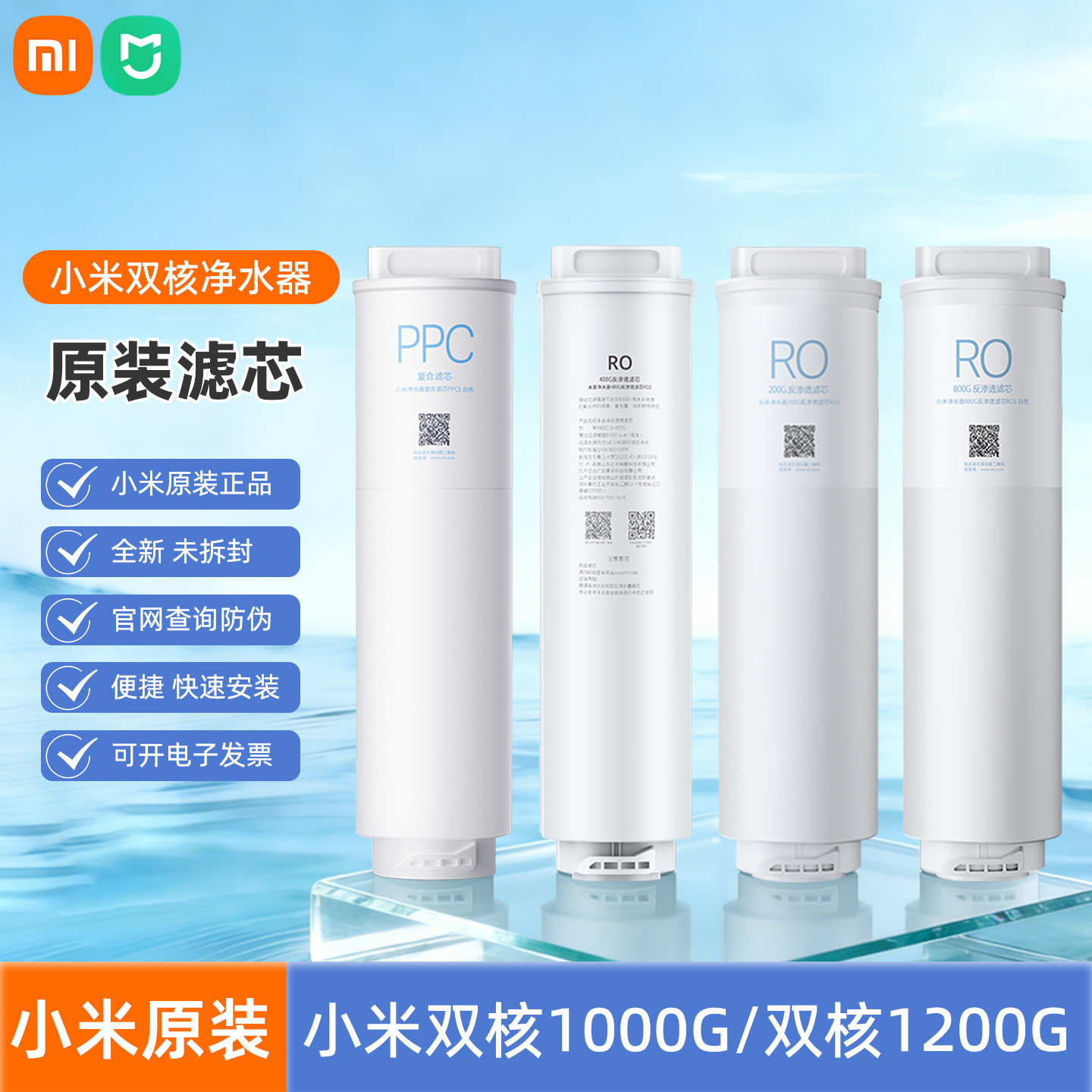📚 小米双核米家净水器1000G/1200G滤芯PPC5复合400G反渗透RO1滤芯