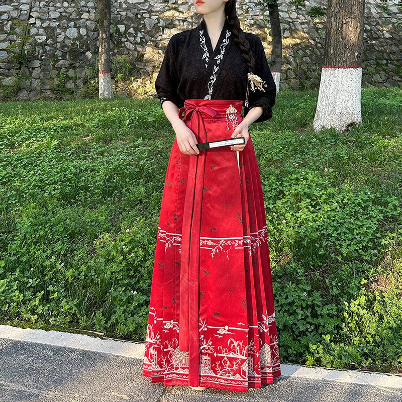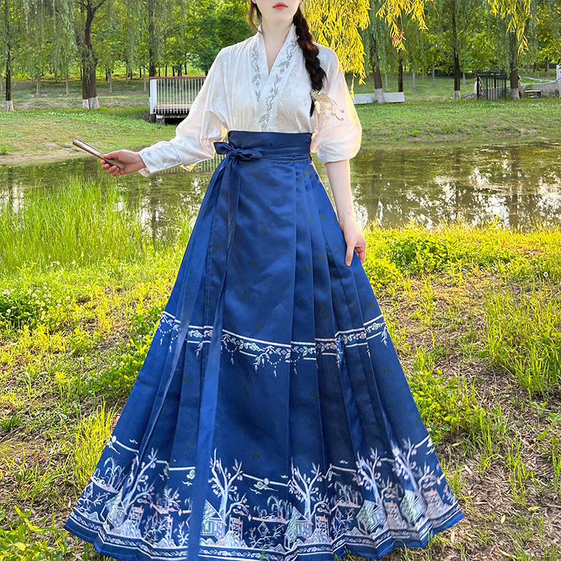 📚 念三月麦穗飘香原创明制汉服缎面马面裙新中式国风通勤汉服飞机袖