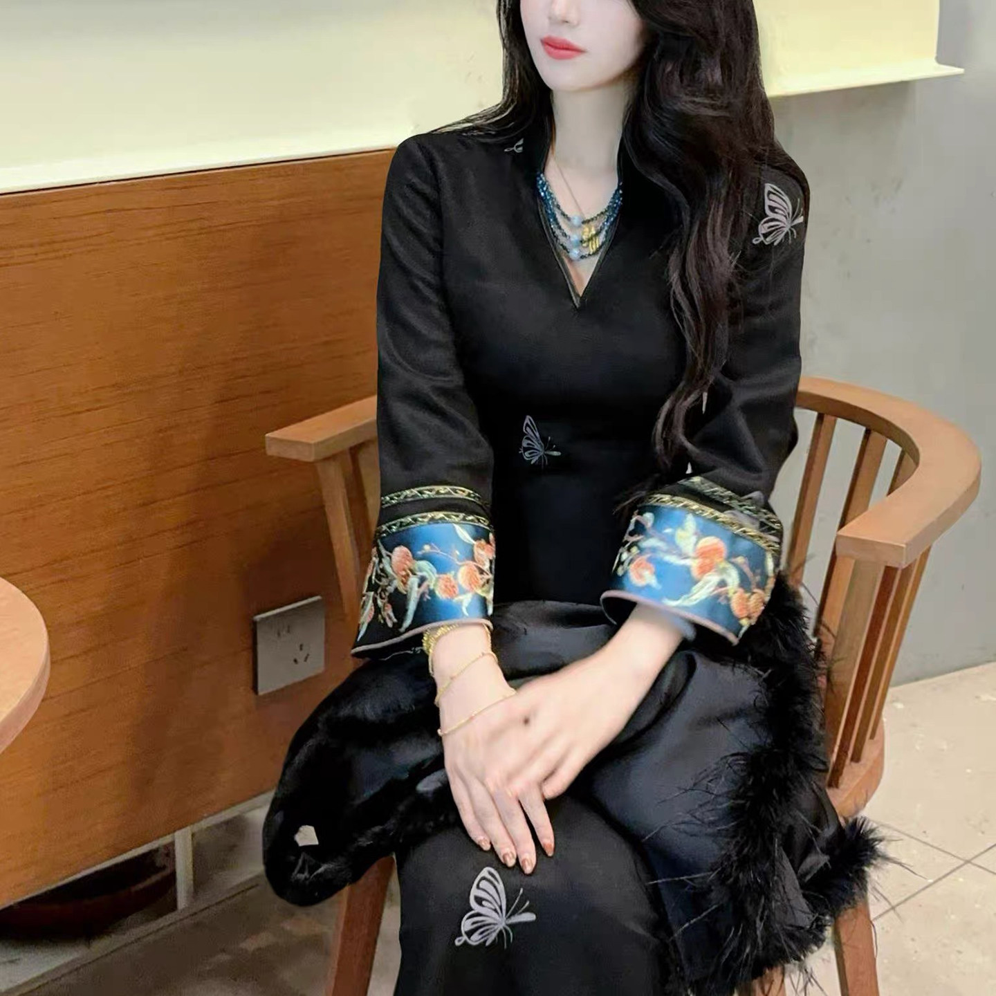 #秋冬新款 #国风女装 #麂皮绒 #旗袍长袖 #新中式国风 #券后价168