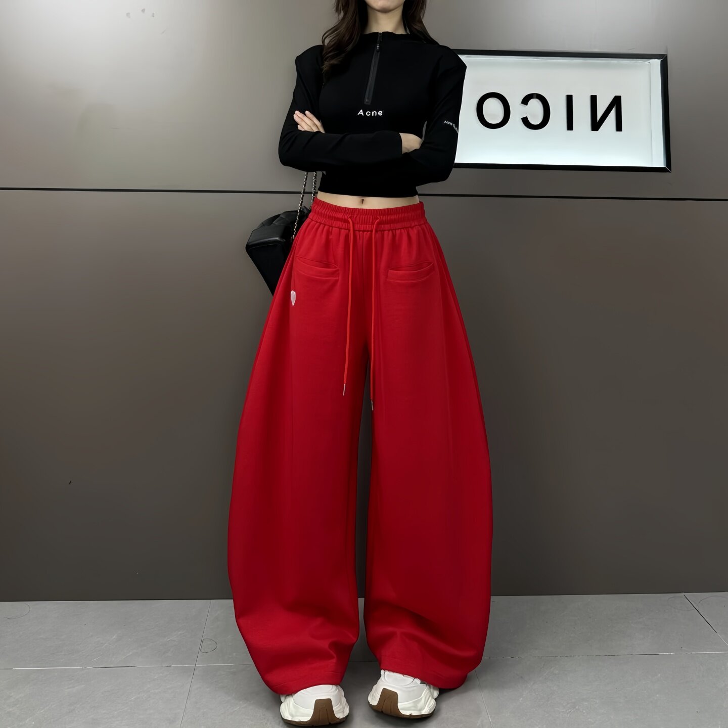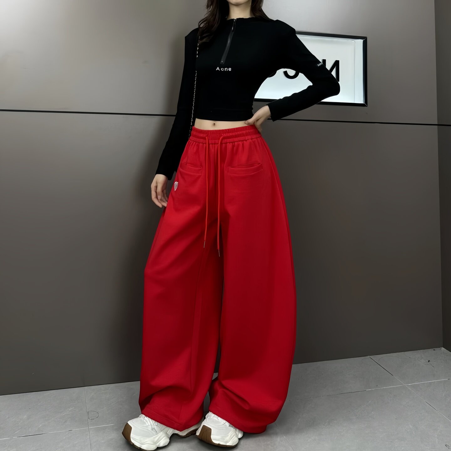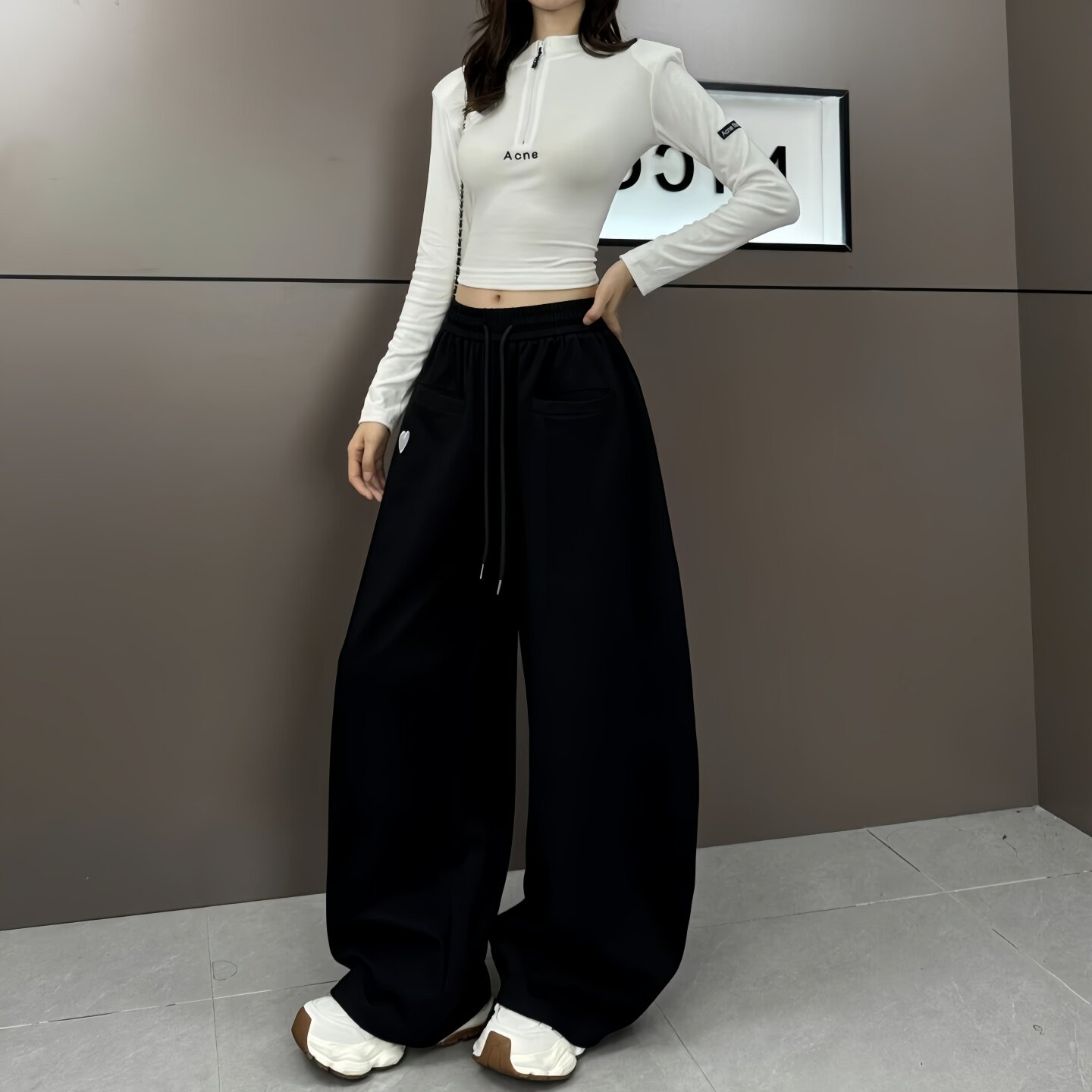 📚 美式弯刀阔腿裤女2026春季新款宽松显瘦休闲卫裤垂感工装运动裤潮