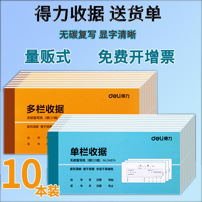 📚 得力收据二联收款单票据多栏送货单三联带无碳复写报销单多联销货