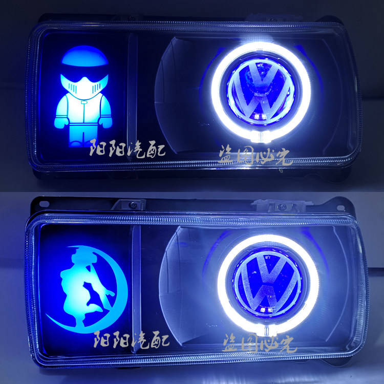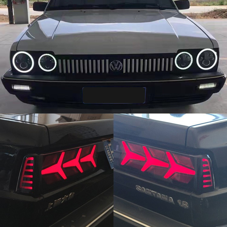 📚 适用于桑塔纳普桑大灯总成改装透镜天使眼日行灯汽车鱼骨尾灯改装