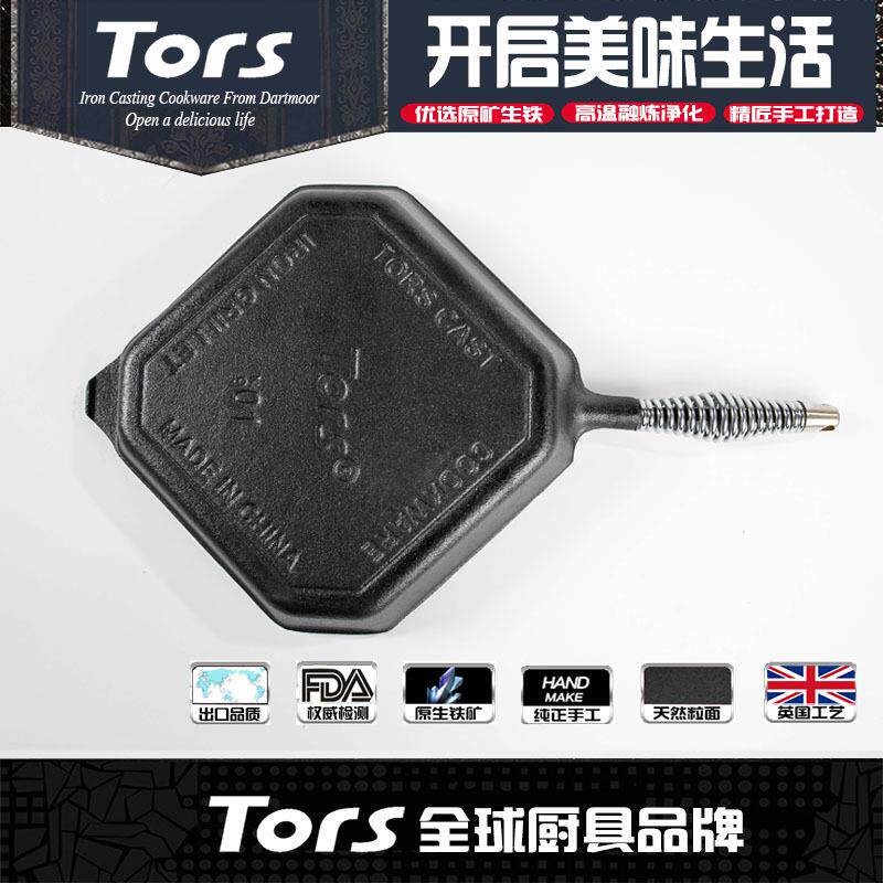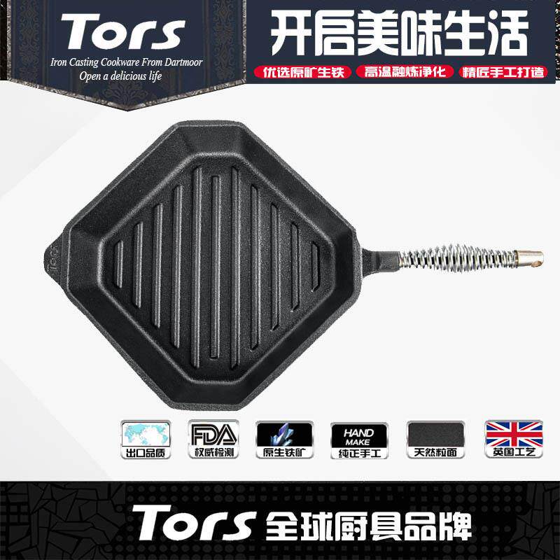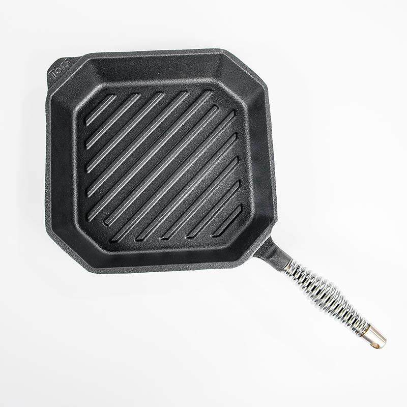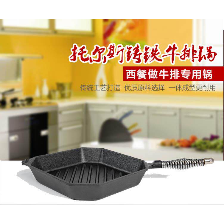 📚 托尔斯弹簧把手方牛排煎锅铸铁烤盘烤肉卡式炉烤炉手柄铁板烧