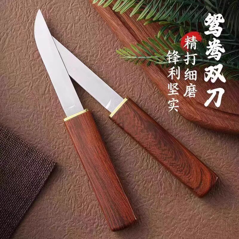 📚 龙凤一体加厚鸳鸯小刀双刀家用厨房削皮刀随身便携水果刀锋利烧烤