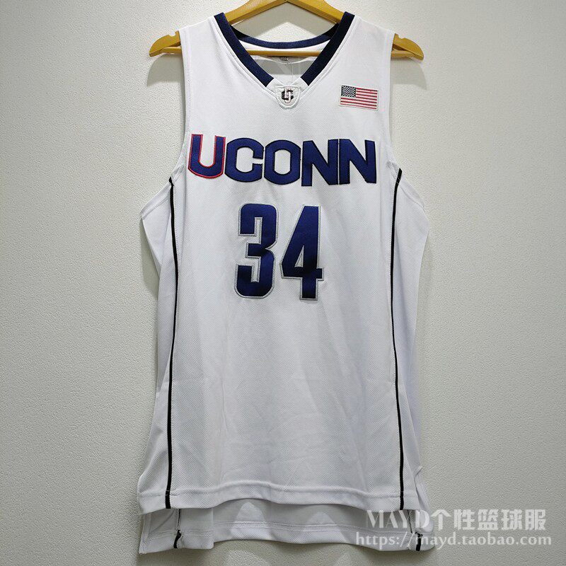 📚 雷阿伦球衣 34号康涅狄格大学复古刺绣速干篮球运动服美式训练服