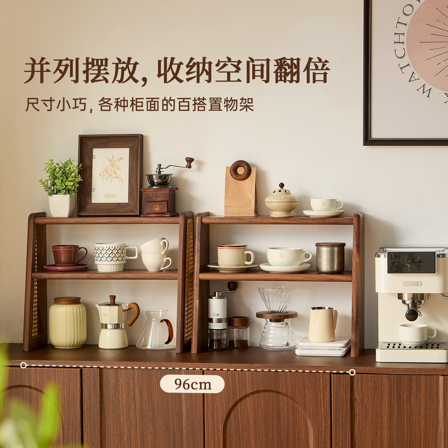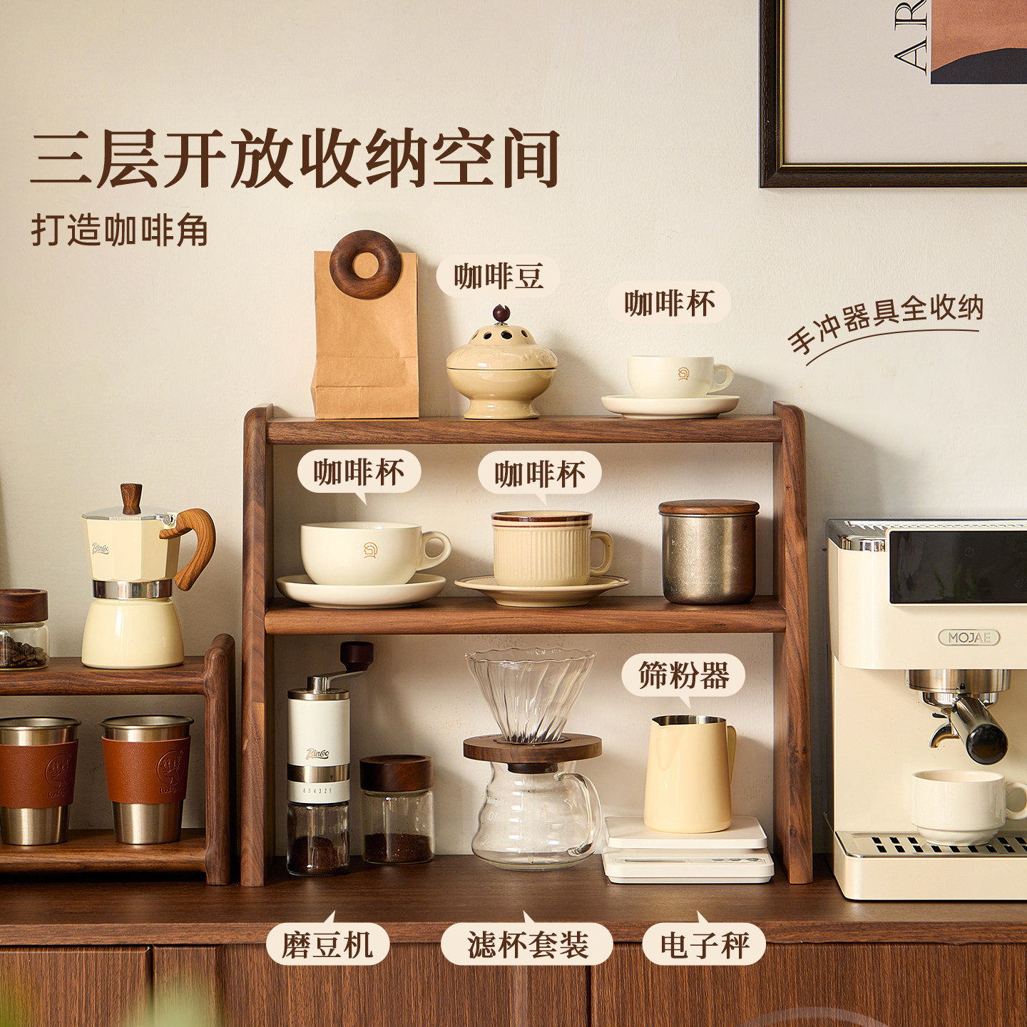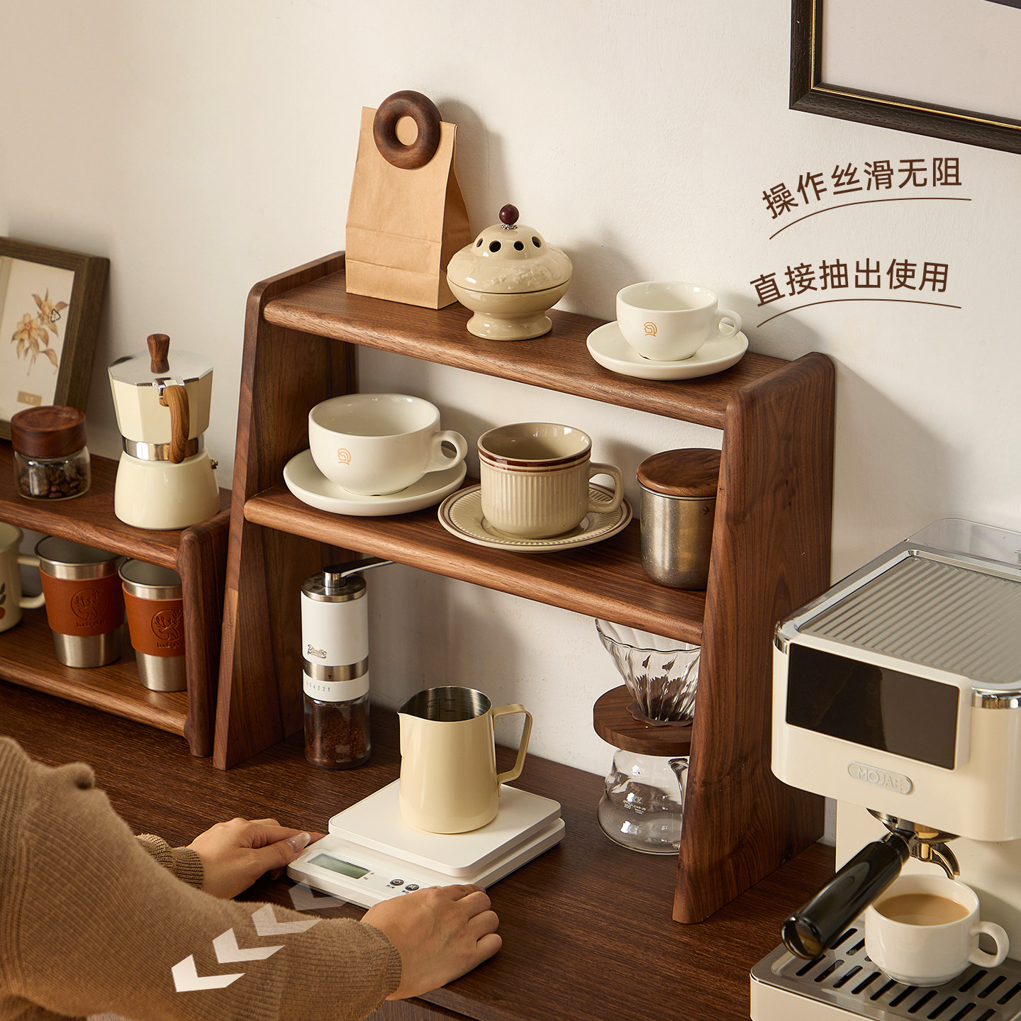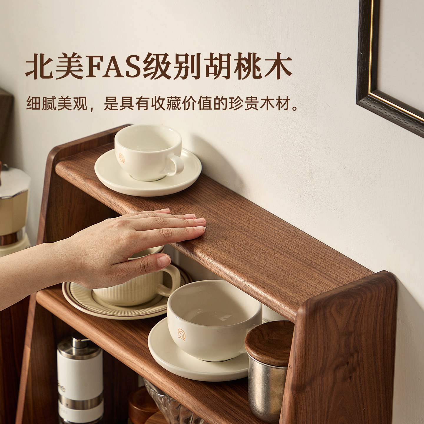📚 黑胡桃木桌面置物架茶具咖啡杯子手冲壶实木收纳架小型博古架木质