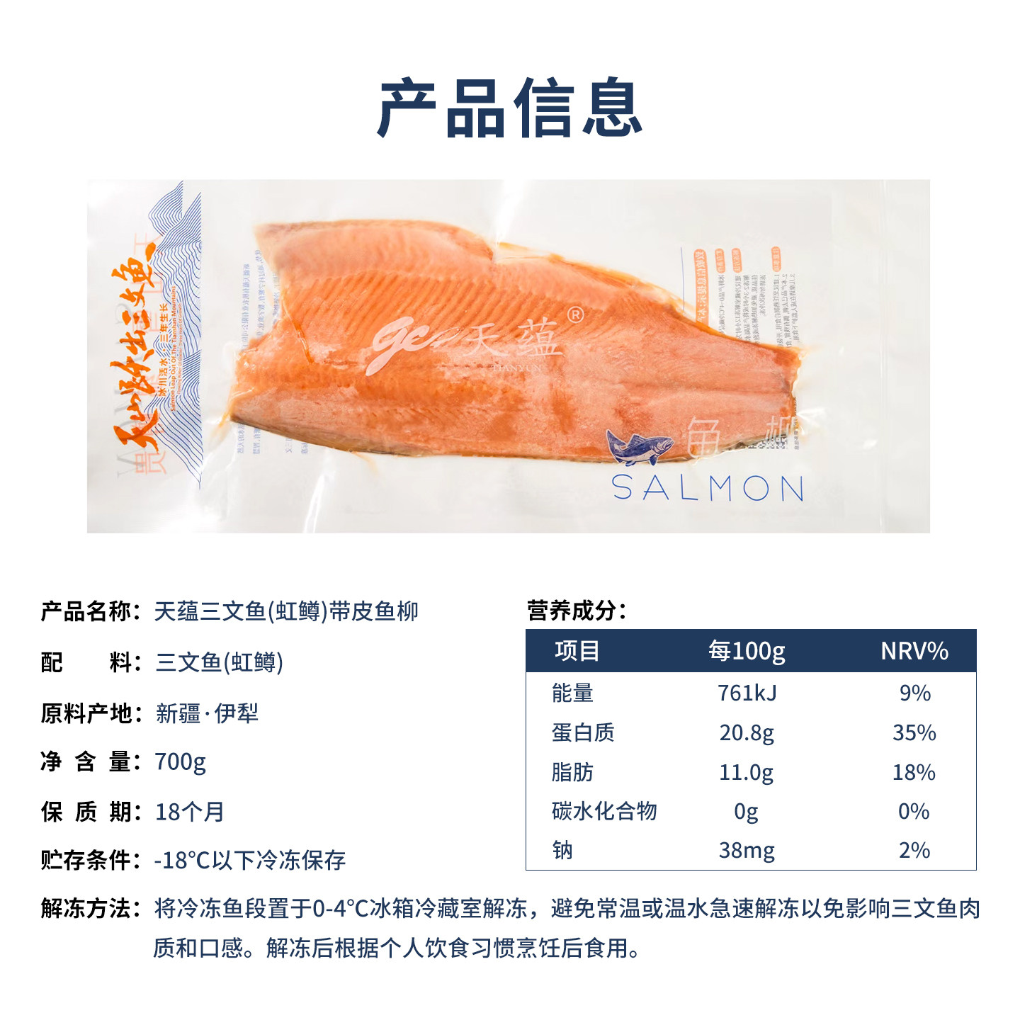 📚 天蕴新疆三文鱼鱼柳带皮生鱼片新鲜虹鳟鱼料理食材国产水产冷藏