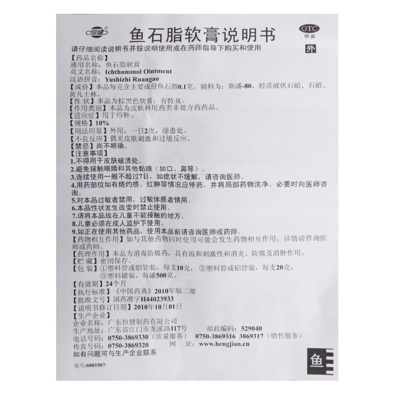 📚 恒健 鱼石脂软膏 20g 疖肿疖子炎症毛囊皮脂腺皮肤化脓性感染药