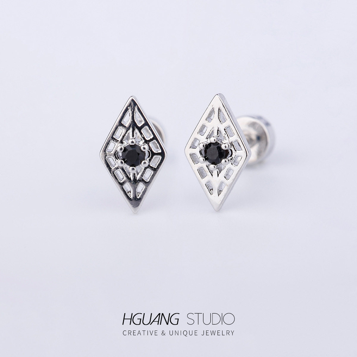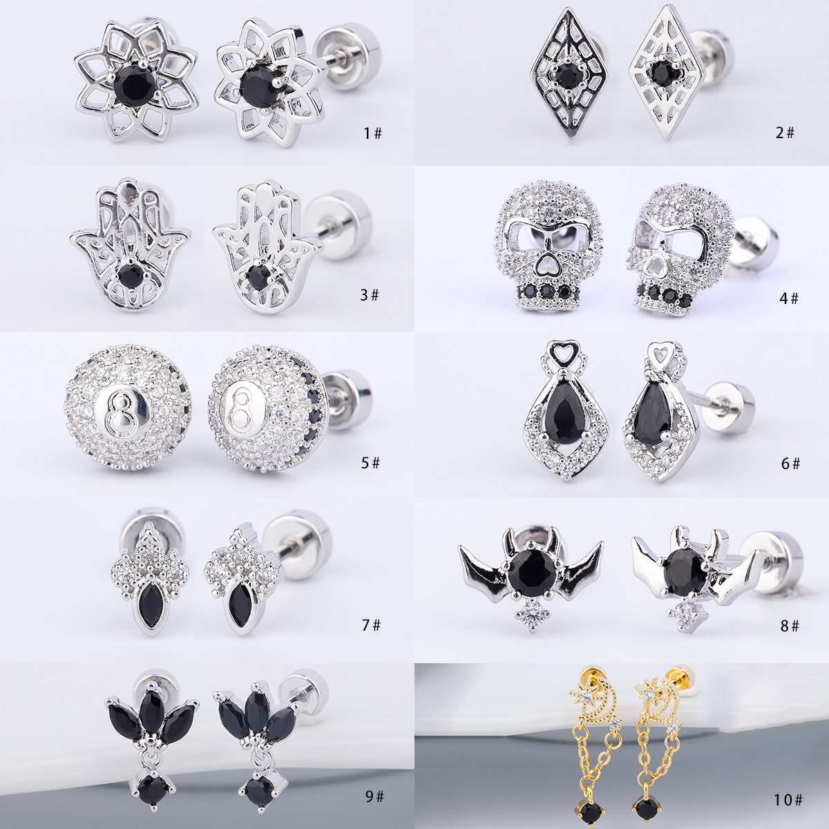 📚 316L钛钢铜镀金微镶锆耳骨钉黑色锆石耳钉欧美外贸跨境穿刺耳骨钉