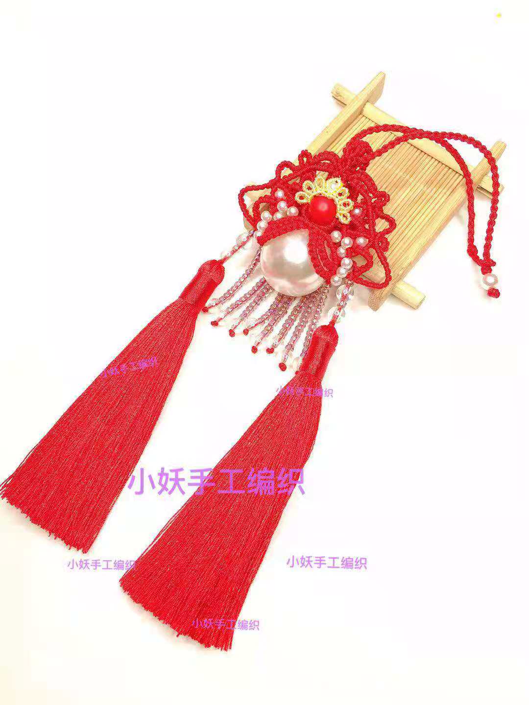 📚 原创手工编织凤冠花嫁头饰成品车挂件DIY刀马旦材料包中国结挂饰