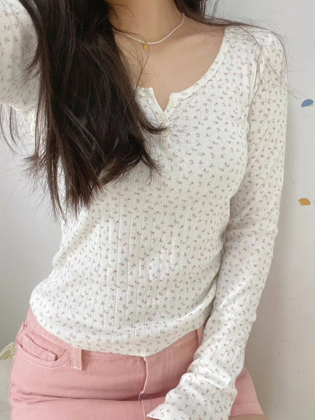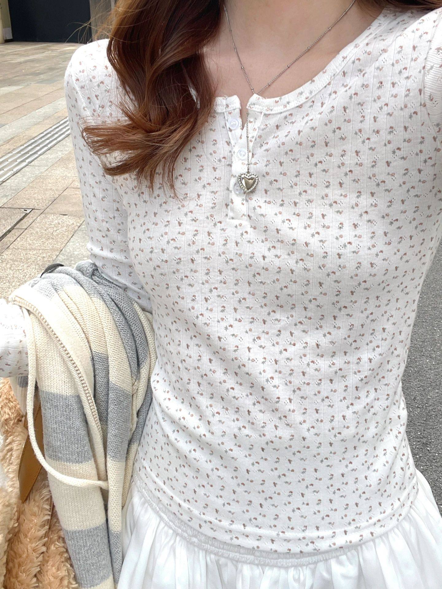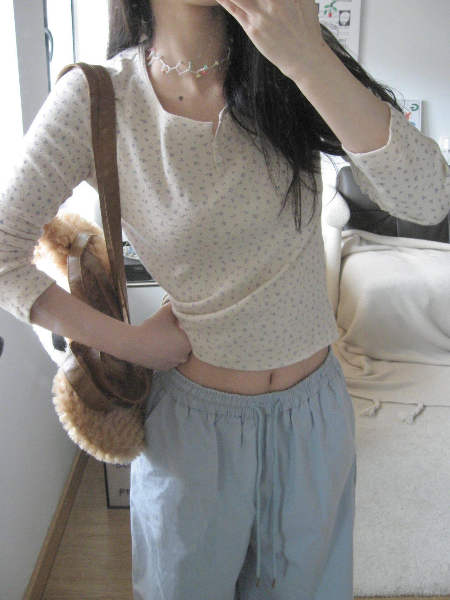 📚 Brandy Girl bm纯棉圆领碎花三粒扣长袖T恤内搭打底衫女秋冬小众