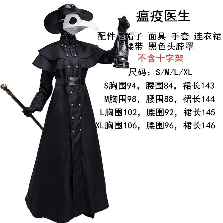 📚 万圣节COS瘟疫医生服装暗黑地牢英雄服 乌鸦鸟嘴面具舞台表演服装