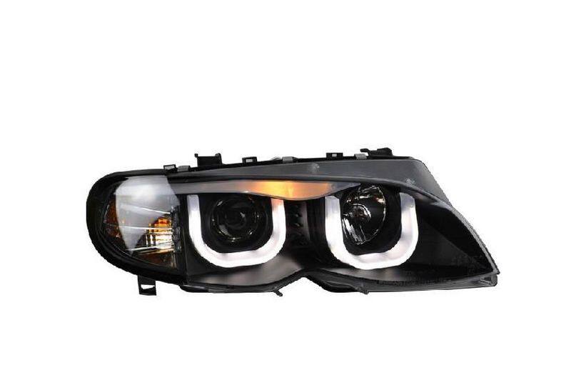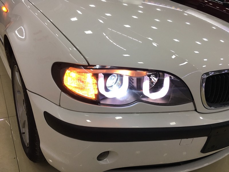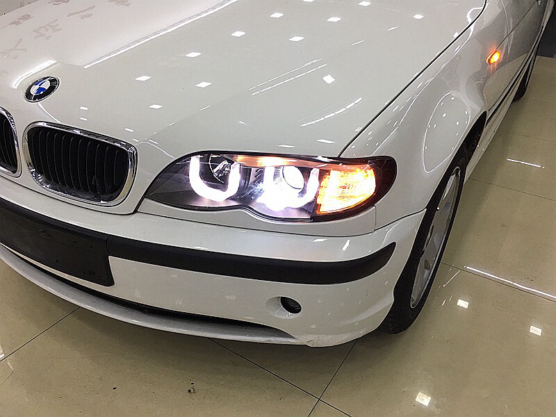 📚 秀山 宝马老款3系E46大灯总成 LED双U型天使眼 透镜大灯总成
