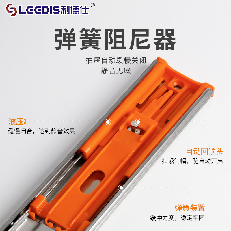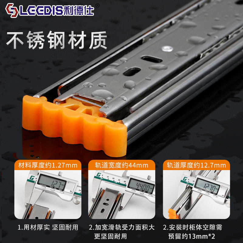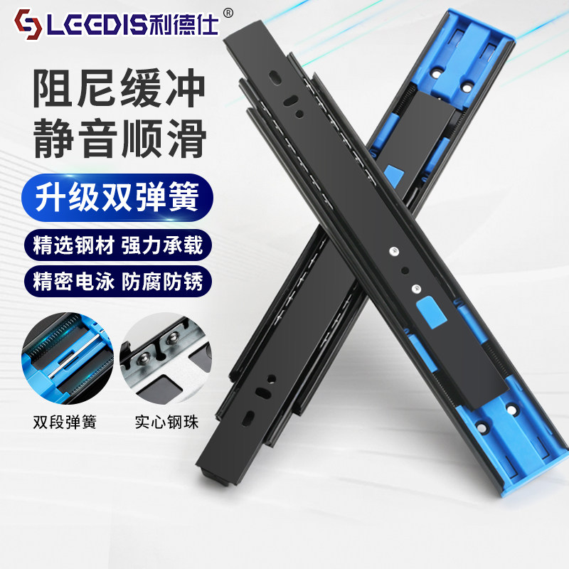 📚 利德仕不锈钢滑动滑槽导轨衣柜滑道三节抽屉轨道阻尼缓冲静音滑轨