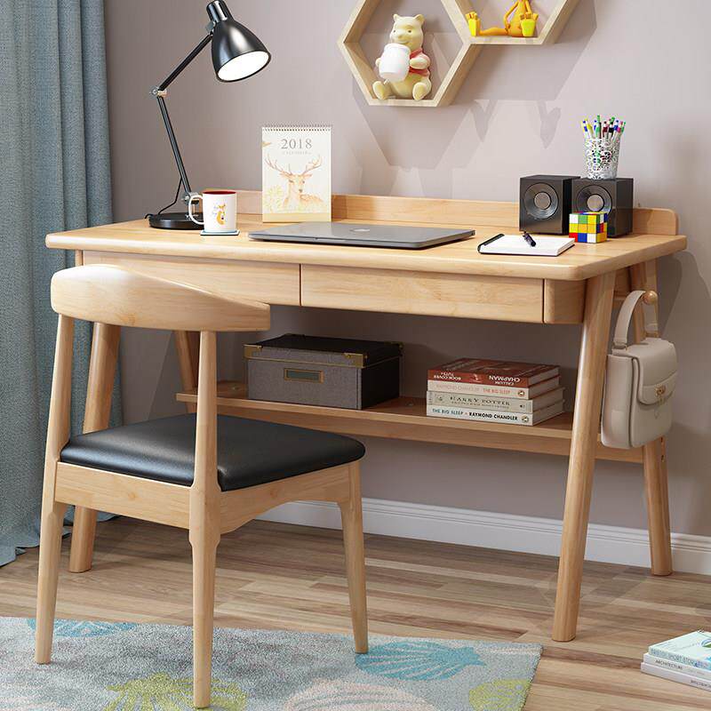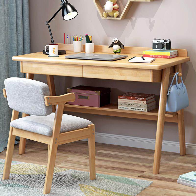 📚 书桌实木电脑桌台式家用学生初中简易办公桌子卧室写字儿童学习桌