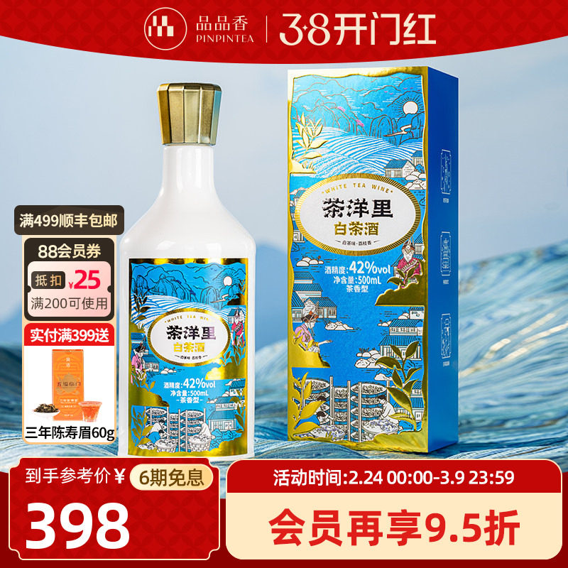 📚 品品香茶洋里白茶酒500ml礼盒装 节日送礼长辈亲戚宴请伴手礼正品