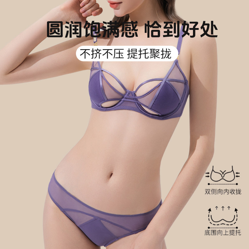 📚 兰帕菲尔蕾丝纯欲胸罩收副乳防下垂超薄性感轻奢时尚法式内衣套装