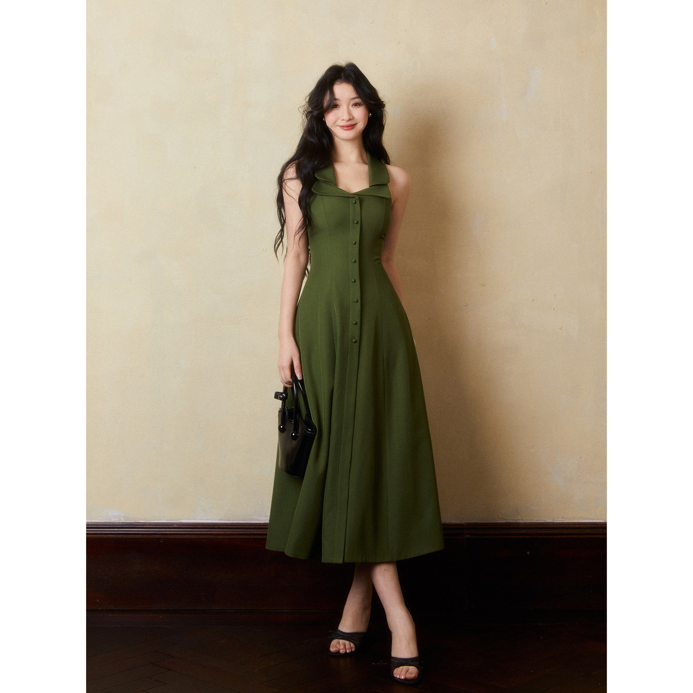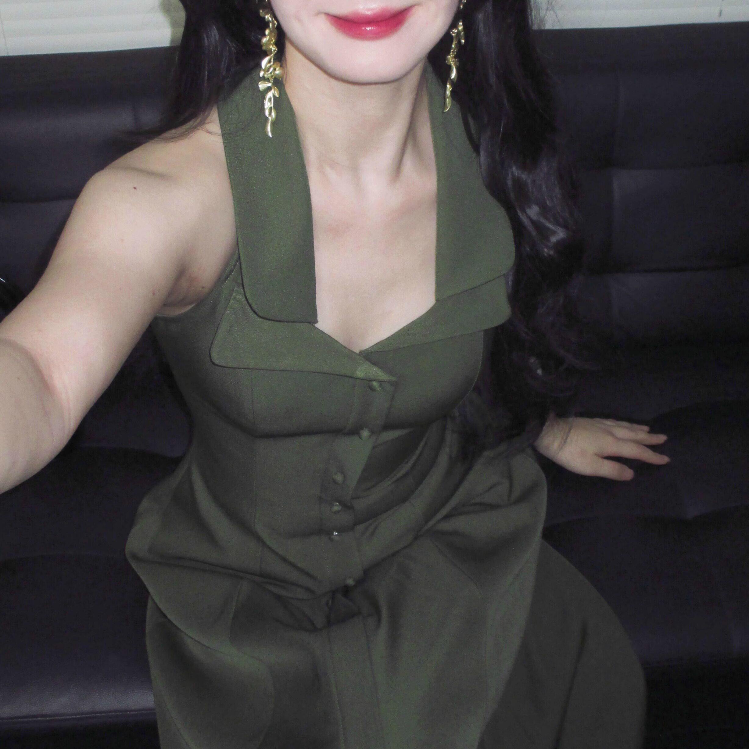 📚 李不婉 斯嘉丽赎罪绿双领收腰西装料气质高级简约吊带连衣裙女夏