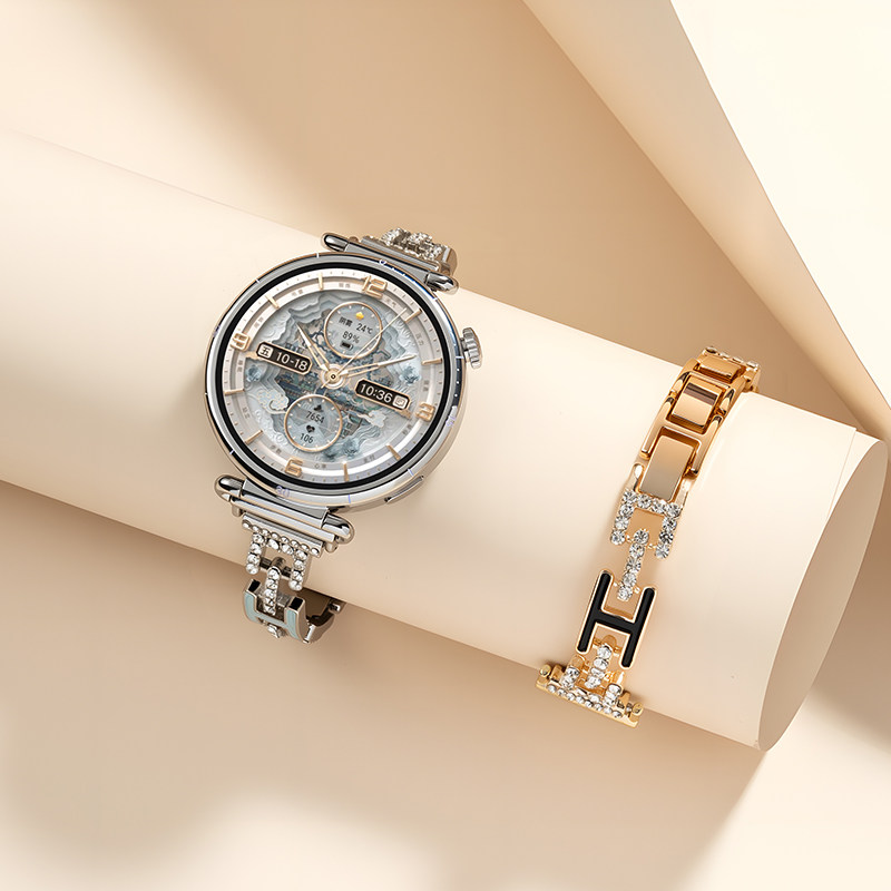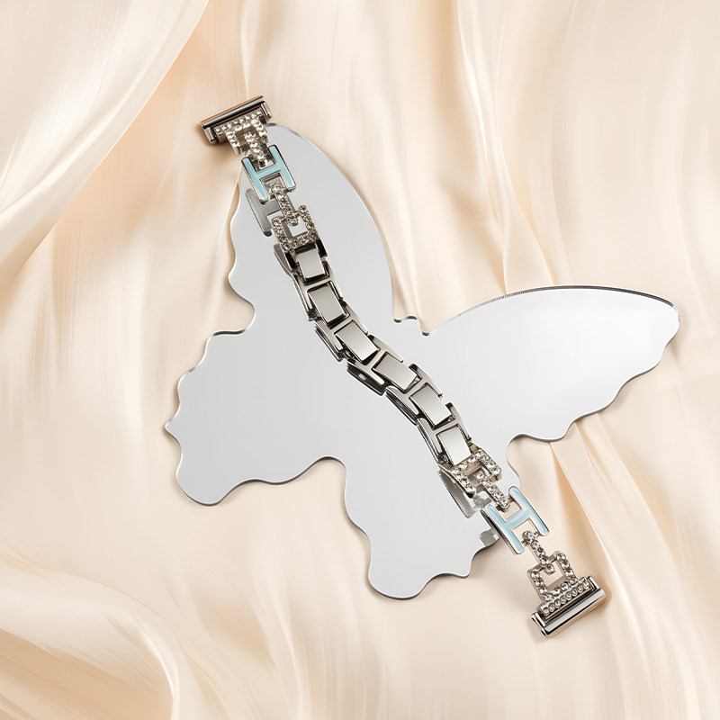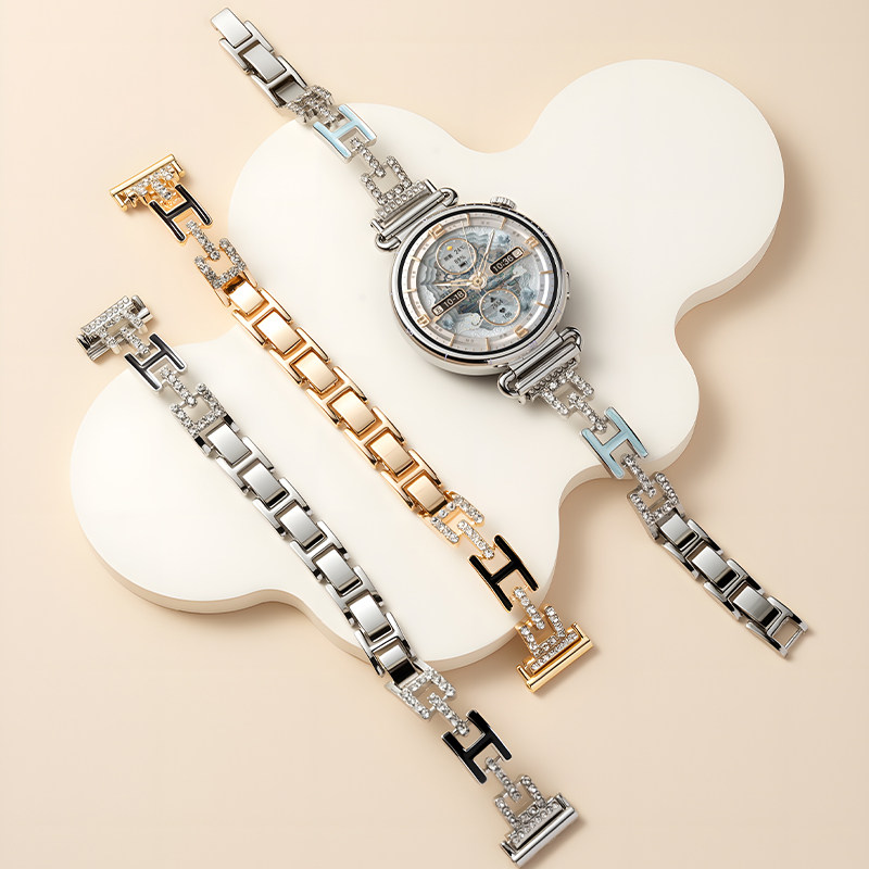 📚 momodiz华为手表表带女款闪钻H扣链条式手表带新款女士专用适用华为gt6表带华为gt5手表带华为fit4表带gt4