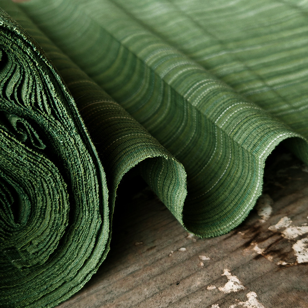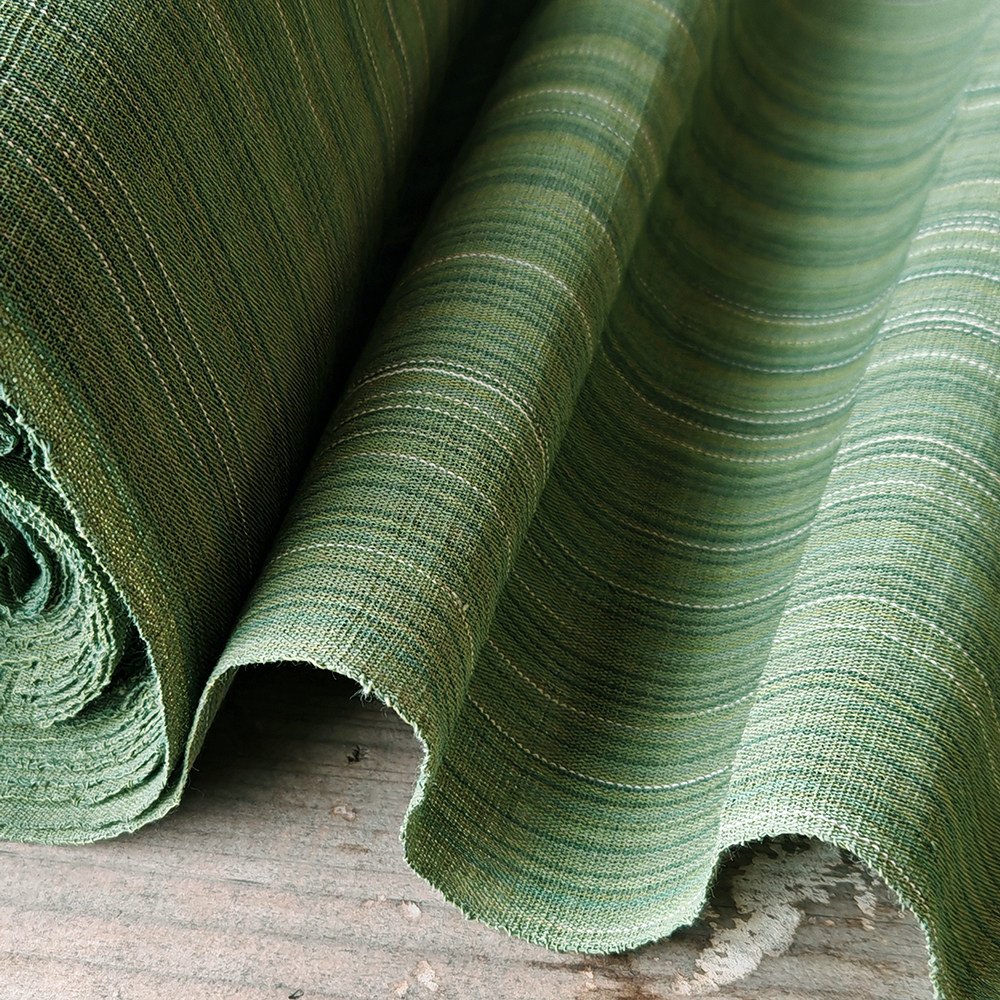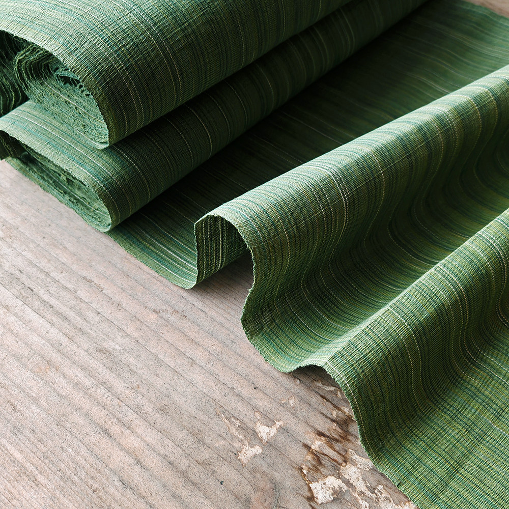 📚 倚山人|手工织布草木植物染粗布土布薄款色织纯棉布黄绿色DIY面料
