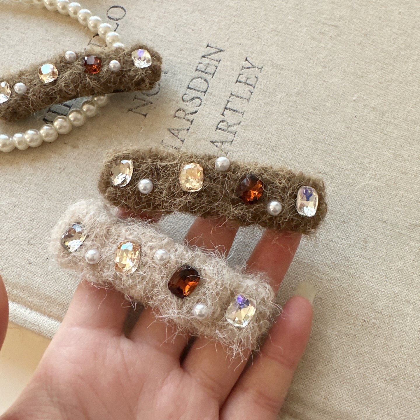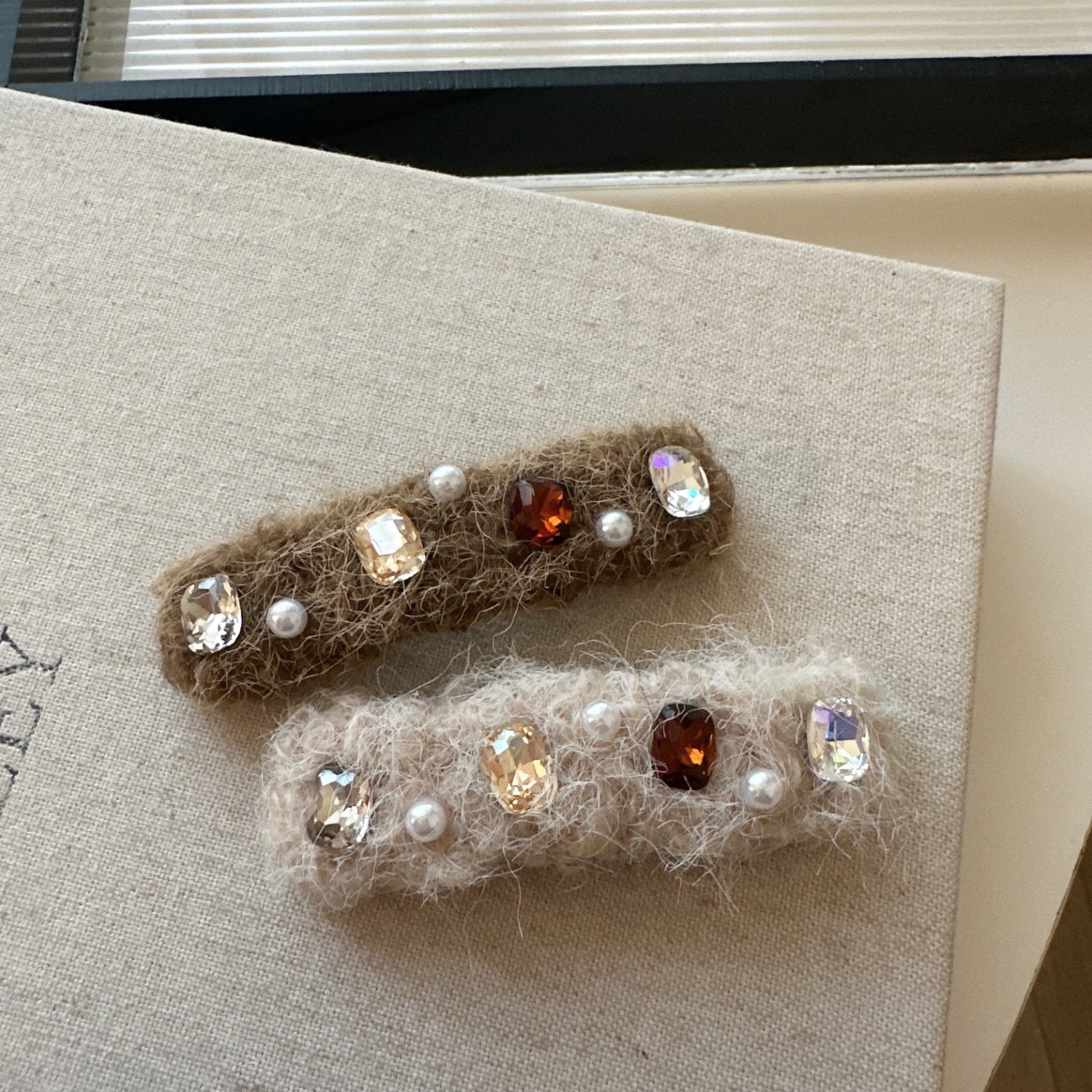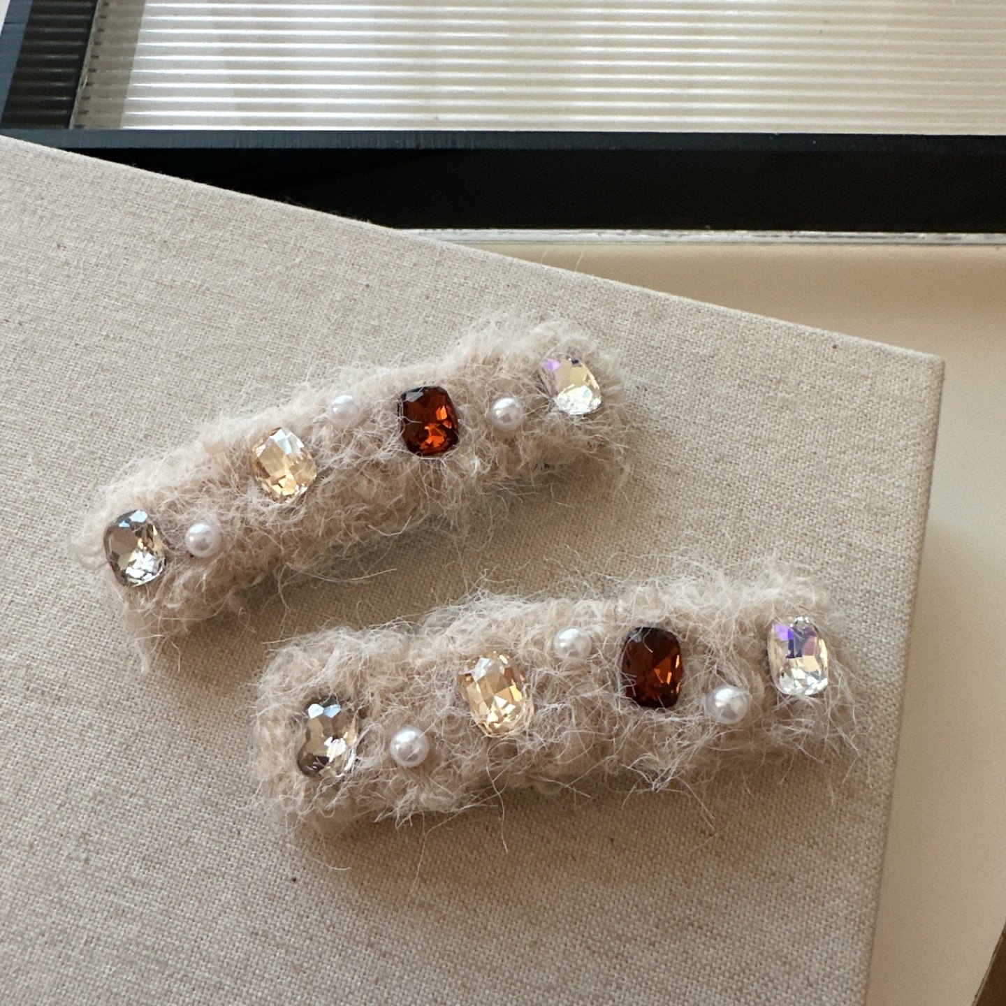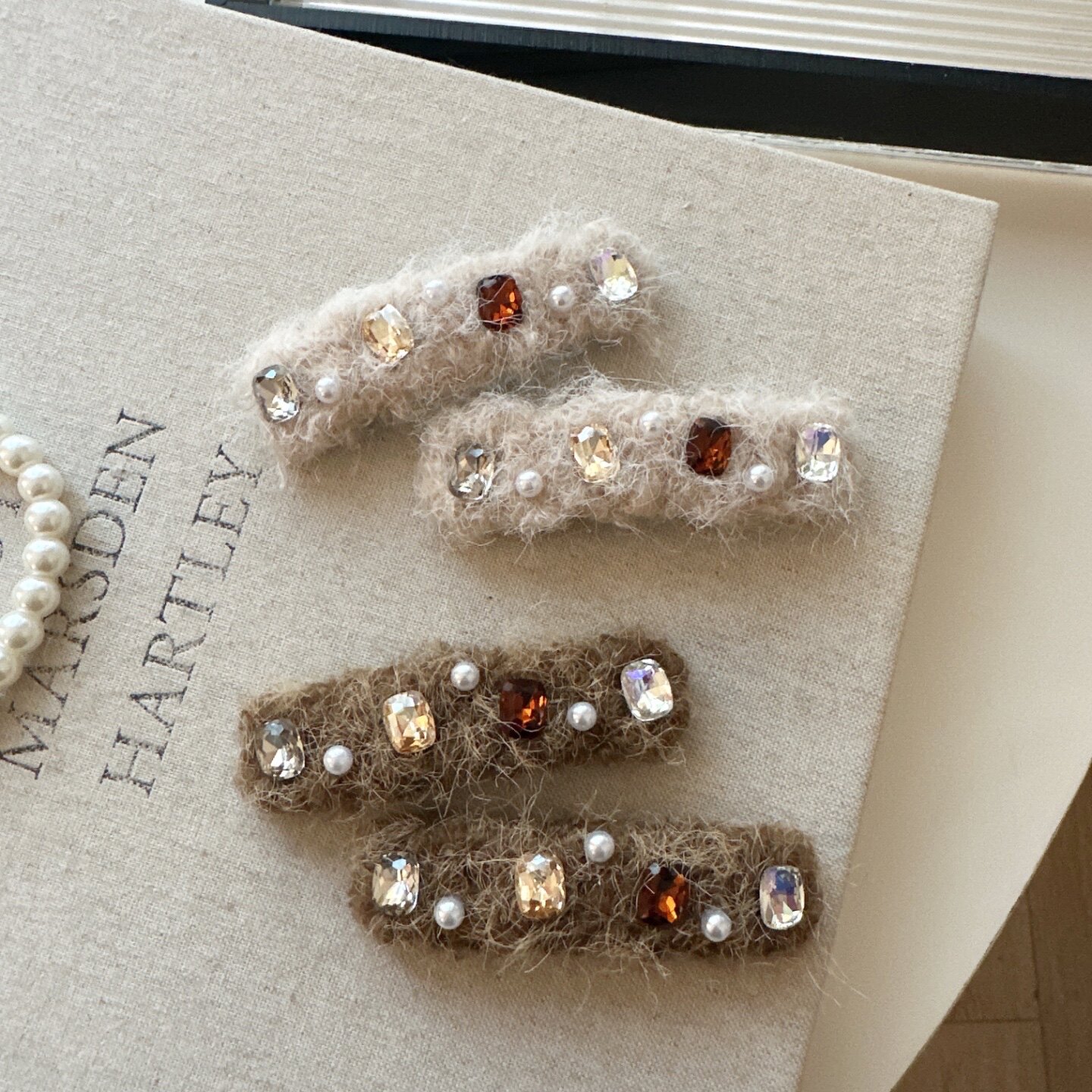 📚 秋冬新款闪钻锆石珍珠发夹毛绒掰掰夹侧边刘海夹气质百搭发卡发饰