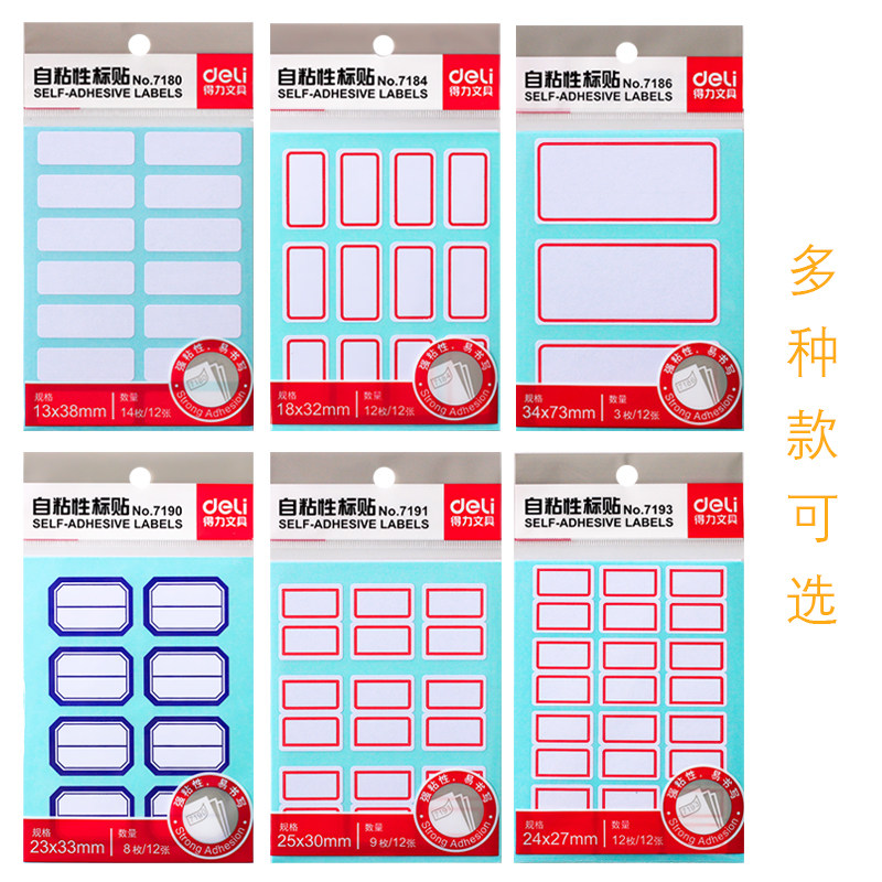 📚 得力标签贴不干胶标签纸自粘性姓名名字大号小号标签贴纸口齐口序扣取口取纸价格价钱贴空白标记可手写学生用