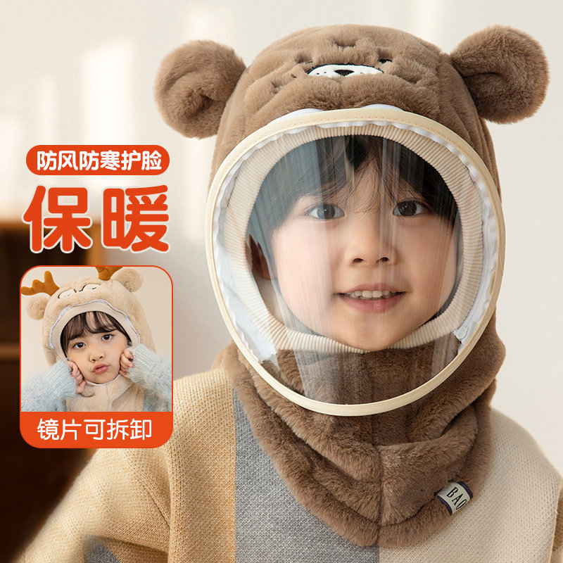 💥小红书种草🔥儿童防风帽面罩电动车冬季保暖头套女童宝宝围巾护脸一体冬帽大放送!💰券后仅59.9!