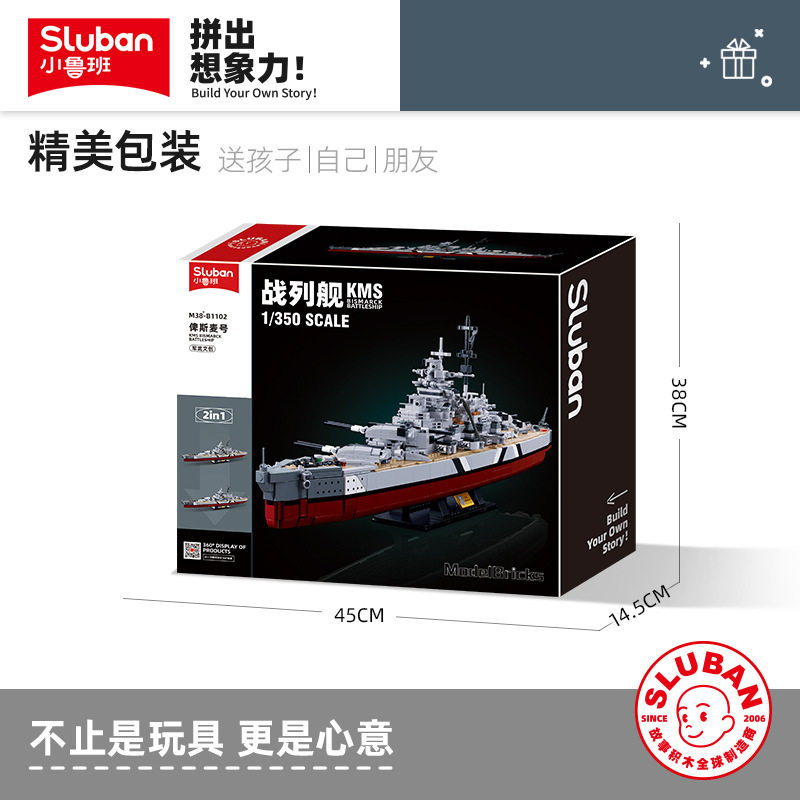 📚 小鲁班积木俾斯麦号战列舰军舰军船拼装组装模型摆件男生礼物