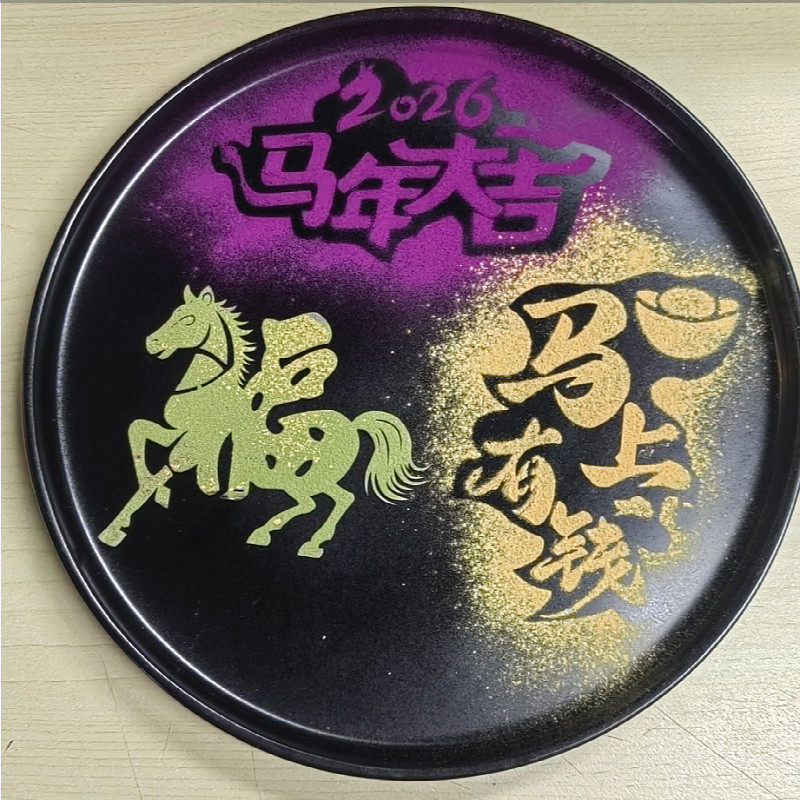 📚 新年2026年夜饭摆盘福字撒粉模具马年大吉马上有钱财神到印字模板