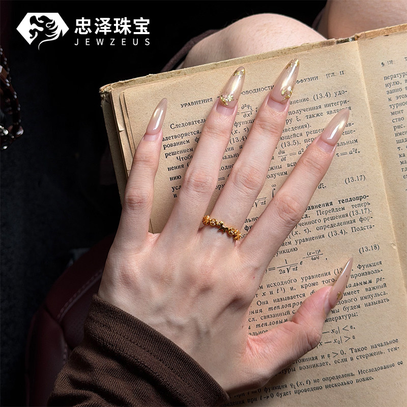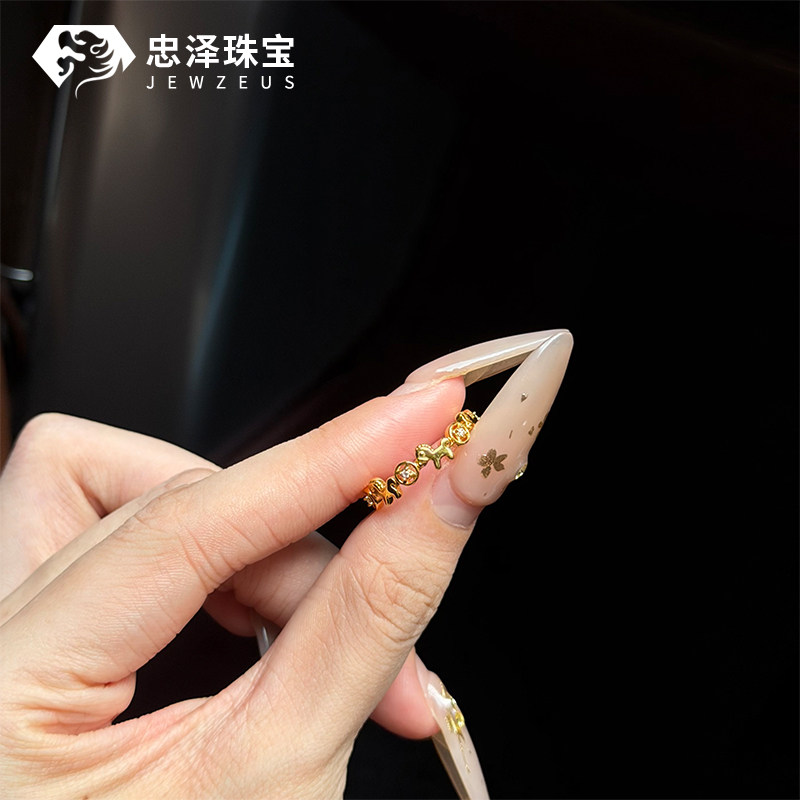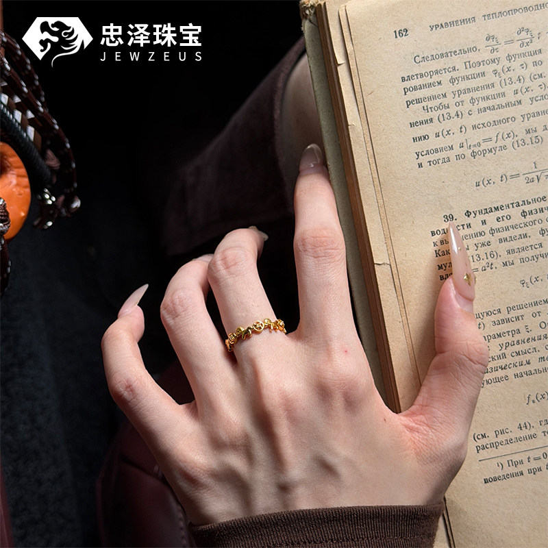 📚 999足金点钻铜钱木马戒指黄金马上有钱戒指情人节生日礼物送女友