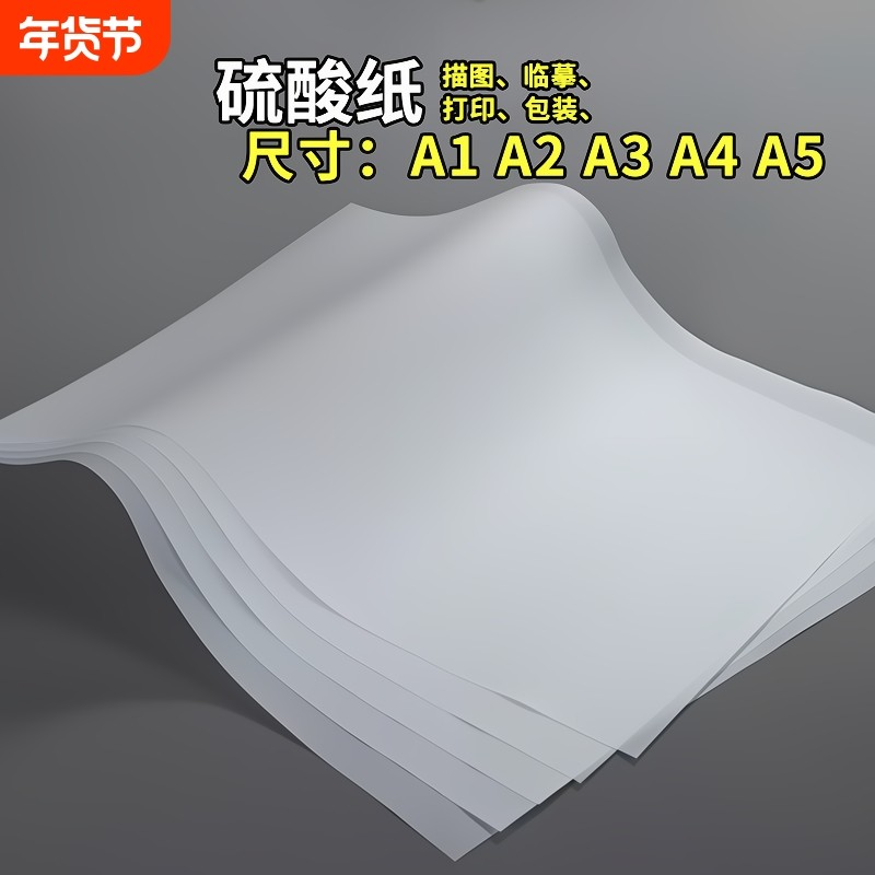 📚 a4硫酸纸a3加厚描图纸a2绘图临摹拷贝字帖练字画画橡皮章半透明纸a1大尺寸印刷大张打印流酸硫化纸工程制图