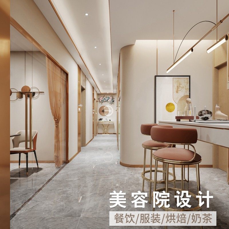 📚 美容院装修设计效果图美发皮肤管理spa美甲店面实体店铺装修设计