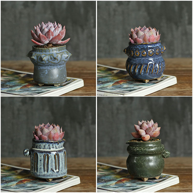 📚 养多肉的专用花盆粗陶手工捏花多肉造型花盆创意流釉多肉异形花盆