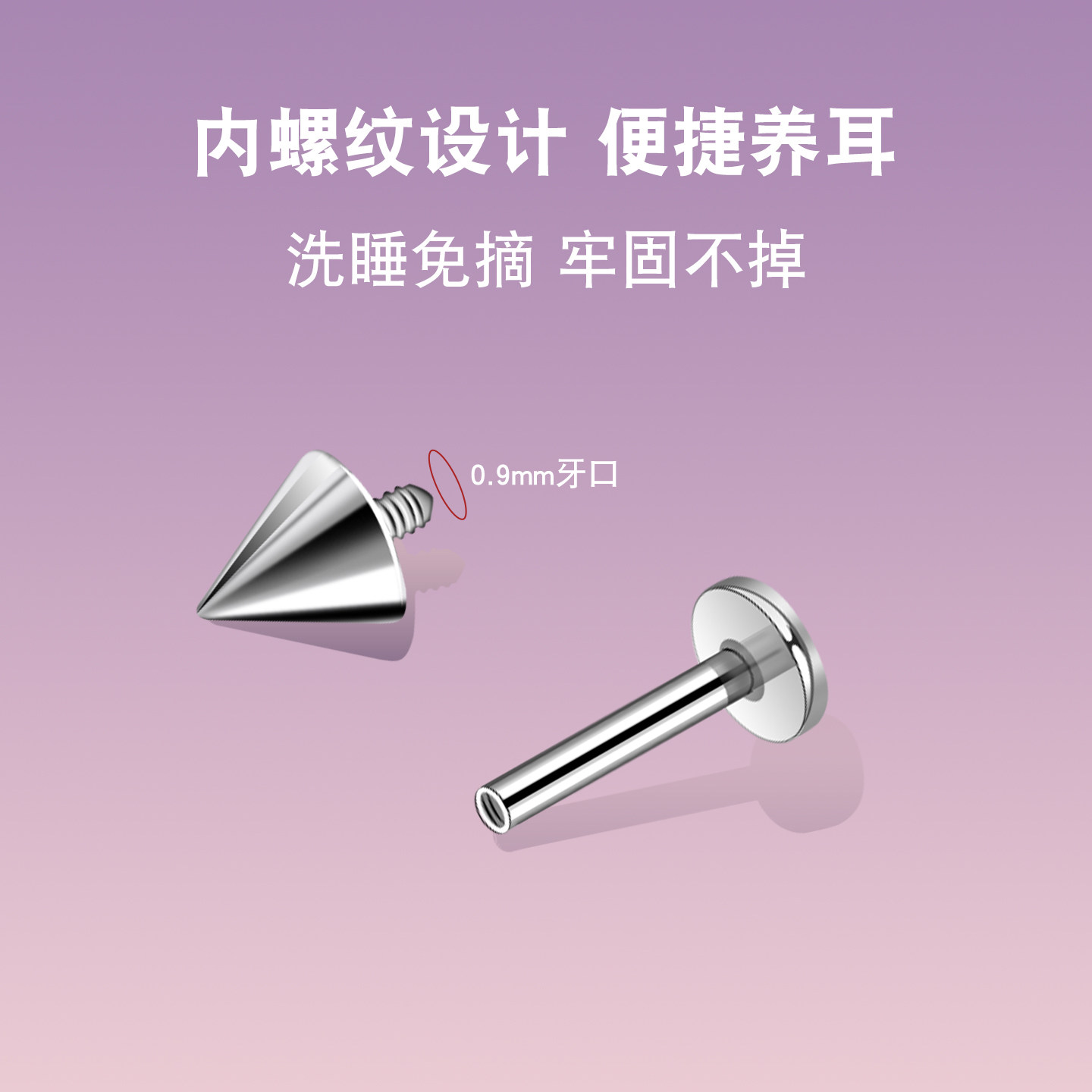 📚 养耳洞F136钛合金恶魔钉耳钉内螺旋尖锥唇钉眉钉虎牙钉耳骨钉改色