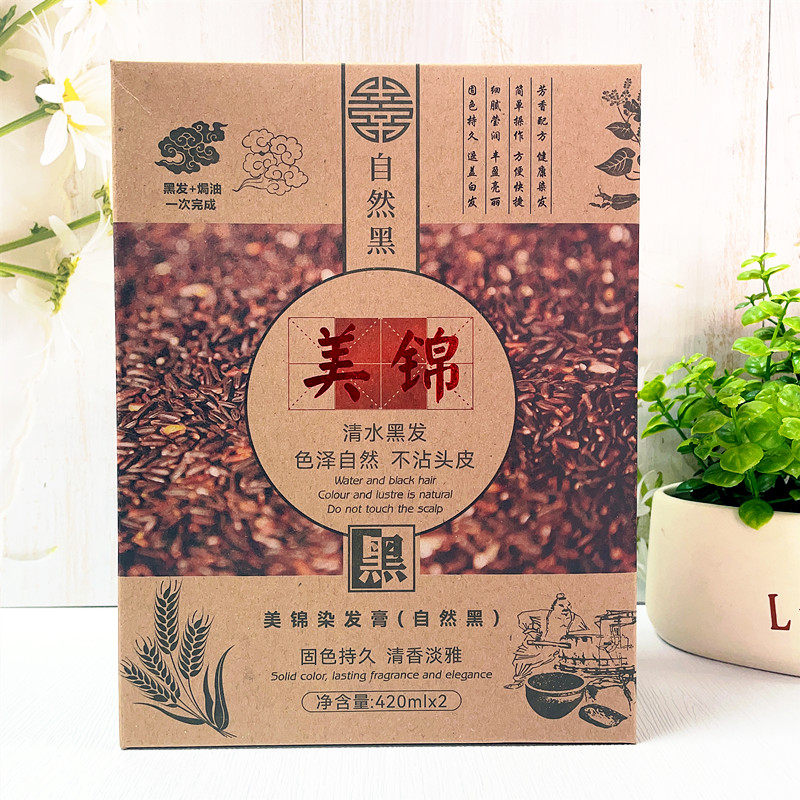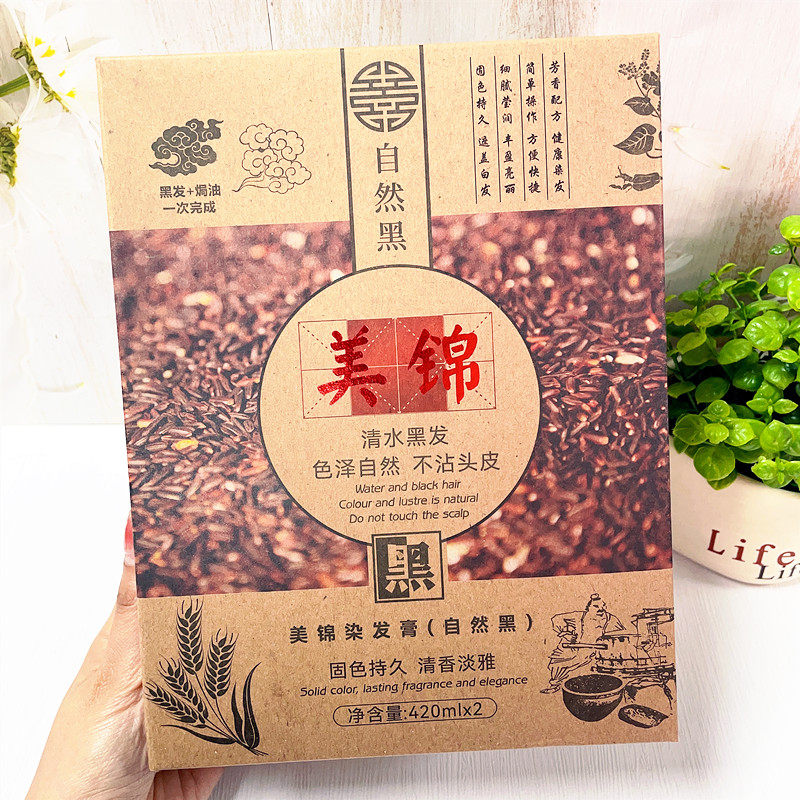 📚 美锦染发膏自然黑不沾头皮清水黑发焗油膏植物染护二合一覆盖白发