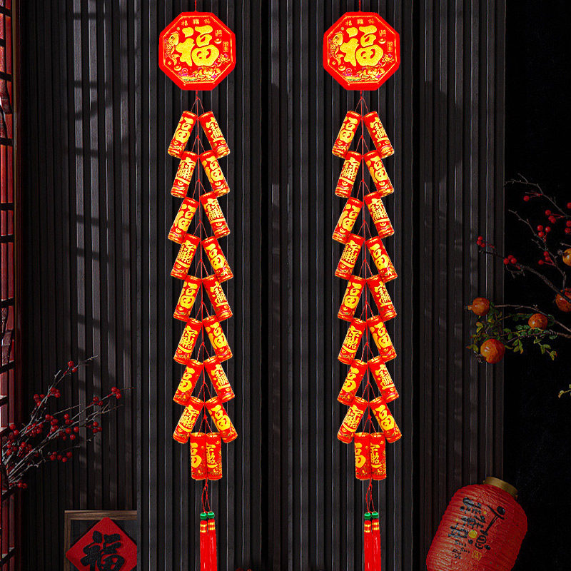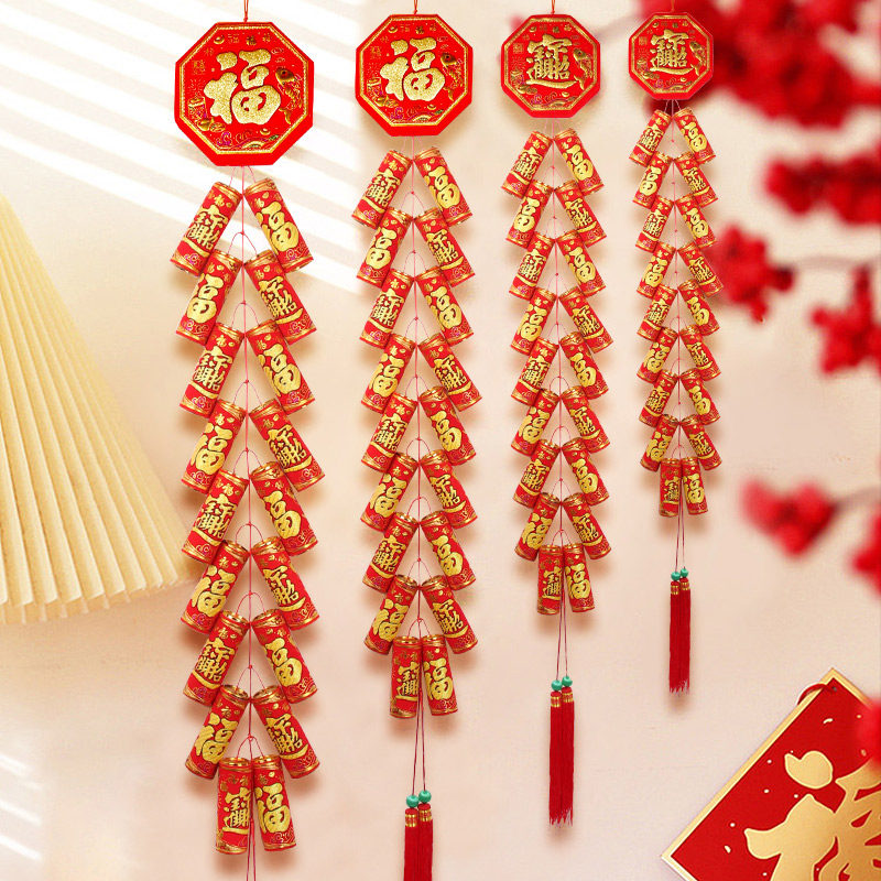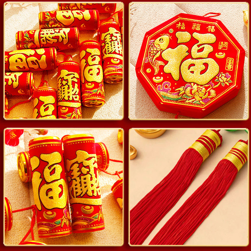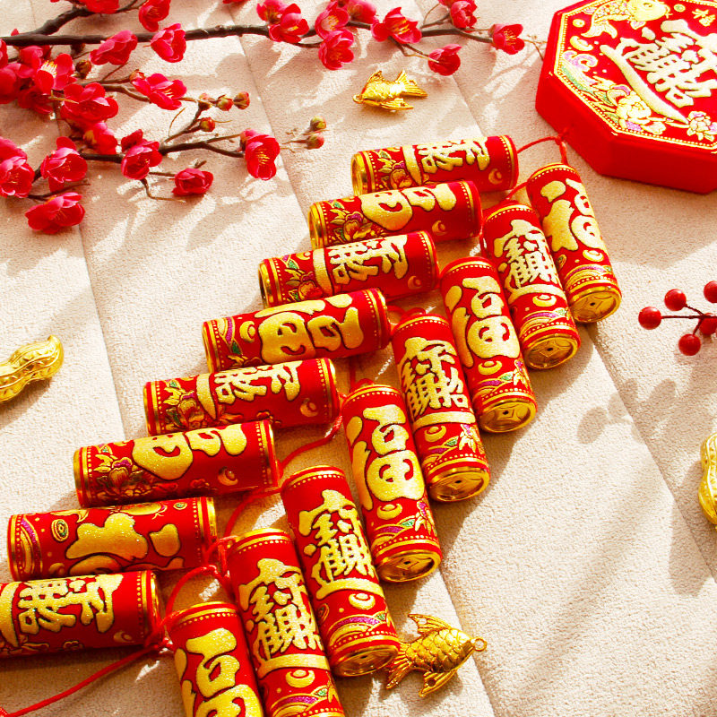 📚 新年仿真鞭炮挂件彩金植绒爆竹商场超市室内布置春节福字炮仗挂饰