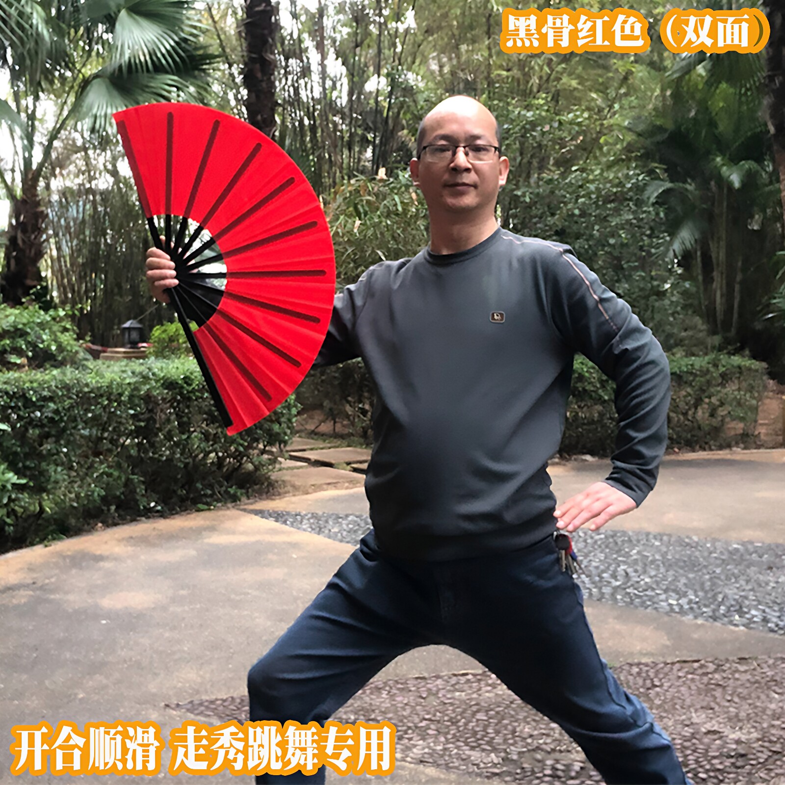 📚 红色扇子开合顺溜双面扇团体模特舞蹈扇旗袍走秀跳舞表演教学折扇