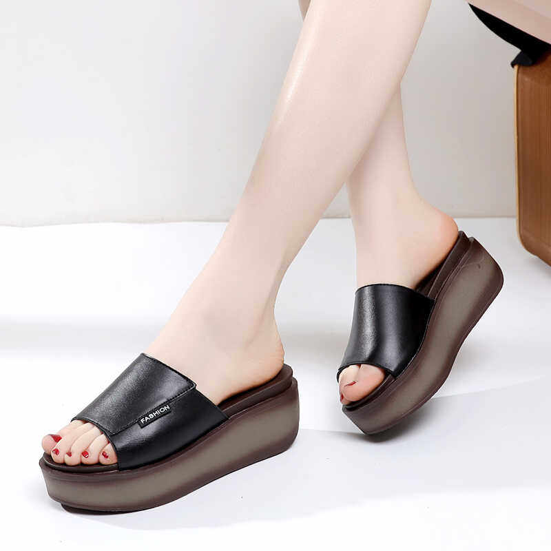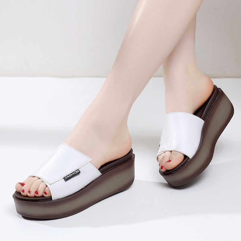 📚 夏季新款一字拖女凉鞋凉拖鞋松糕厚底增高坡跟鞋中跟皮凉鞋女鞋子