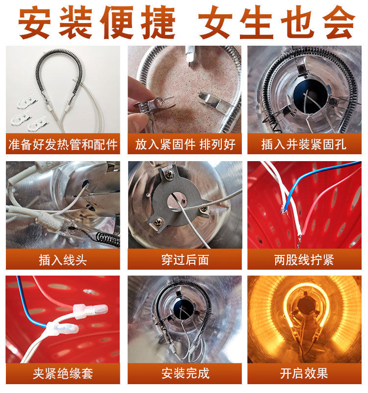 📚 小太阳取暖器发热管配件通用900W烤火炉电暖扇加热管电热灯管220V