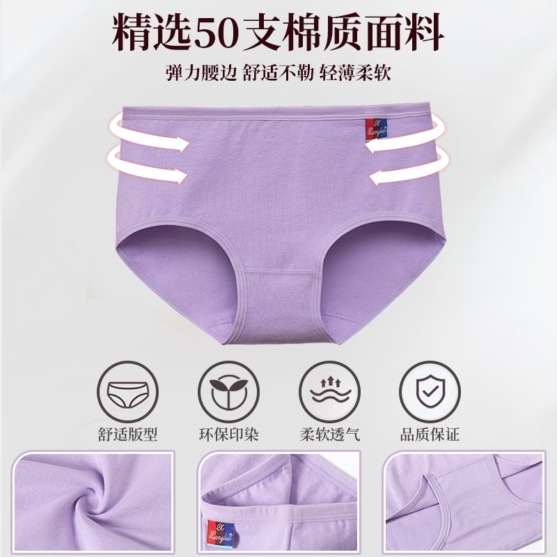 📚 女士纯棉内裤女中腰女式三角100%全棉裆透气大码胖mm少女学生短裤